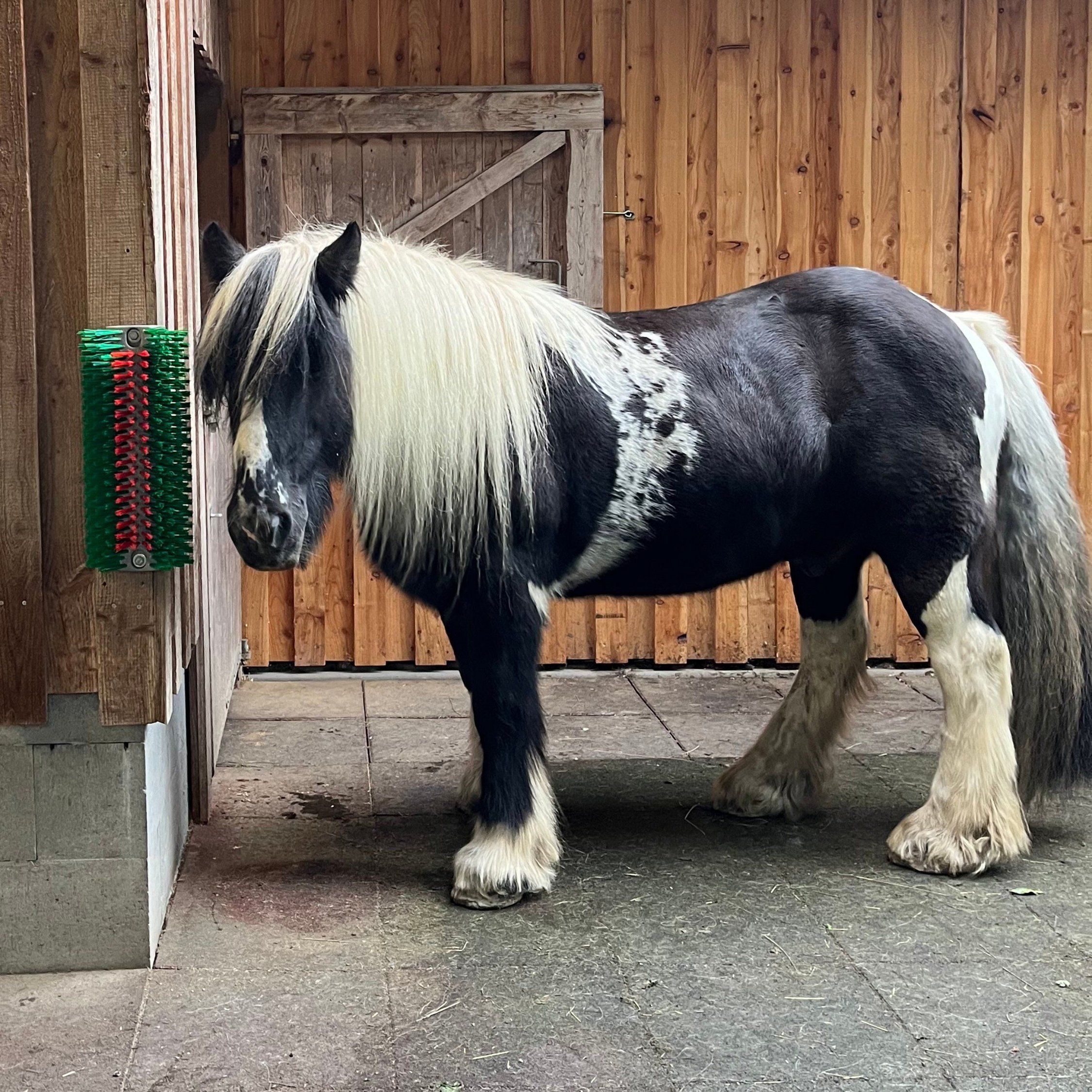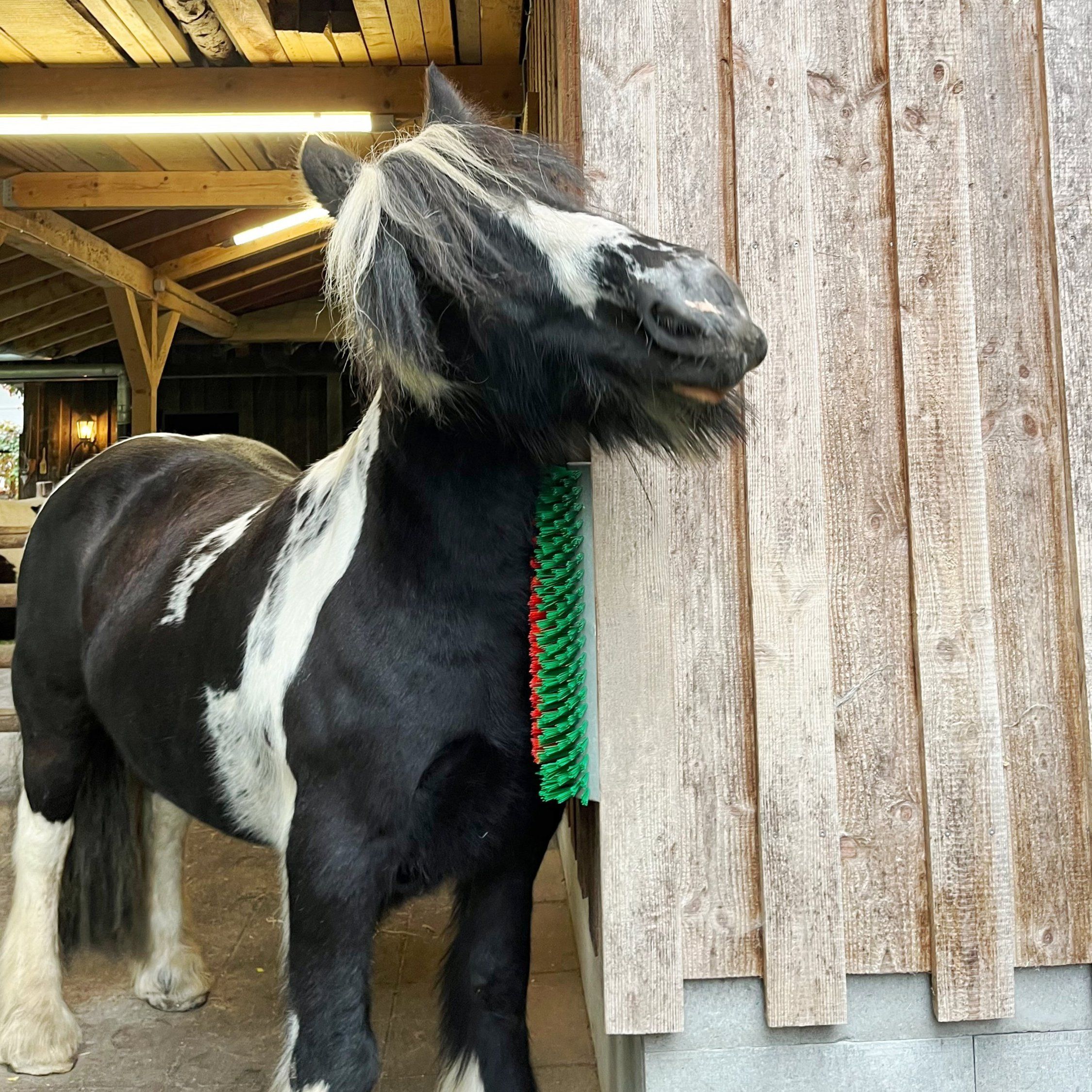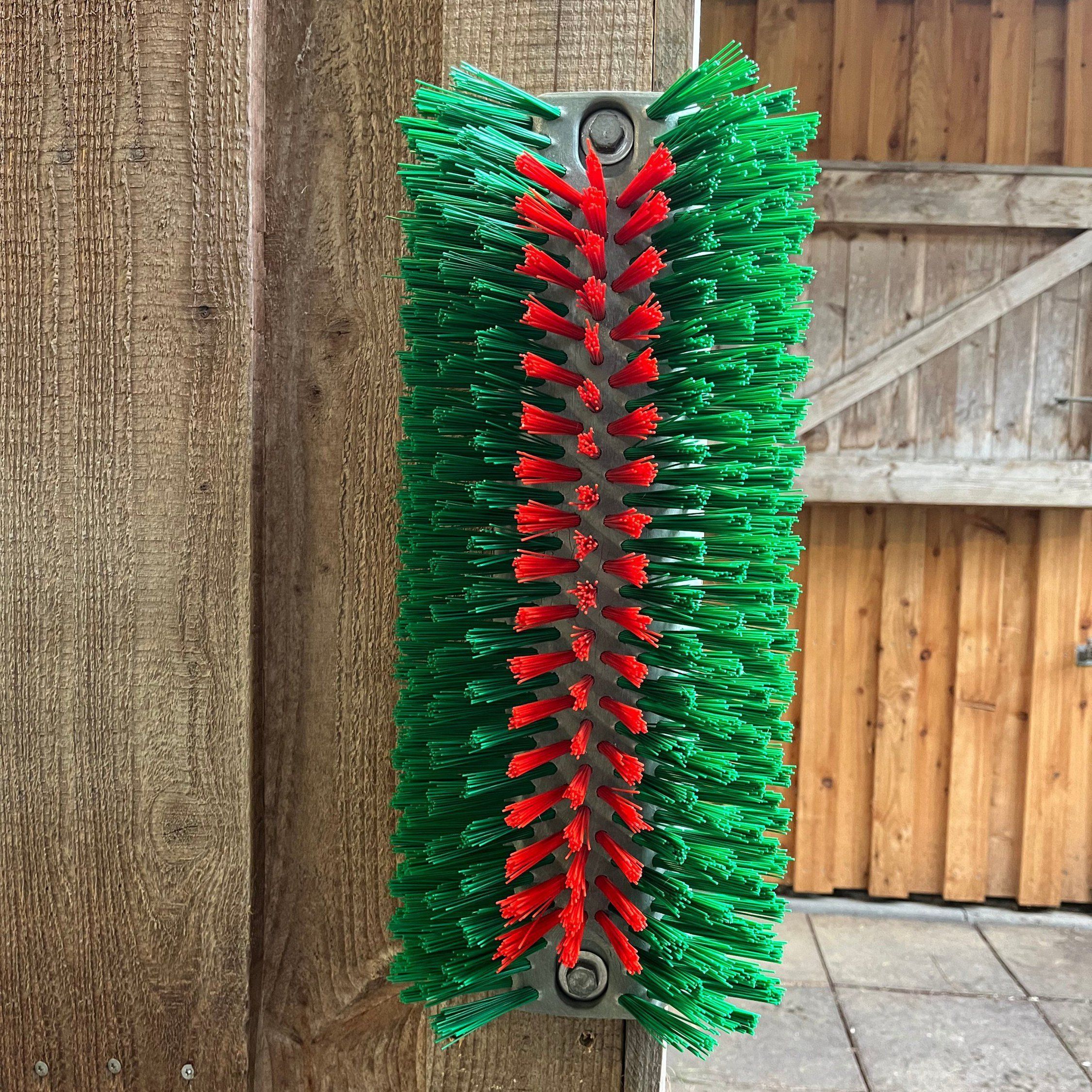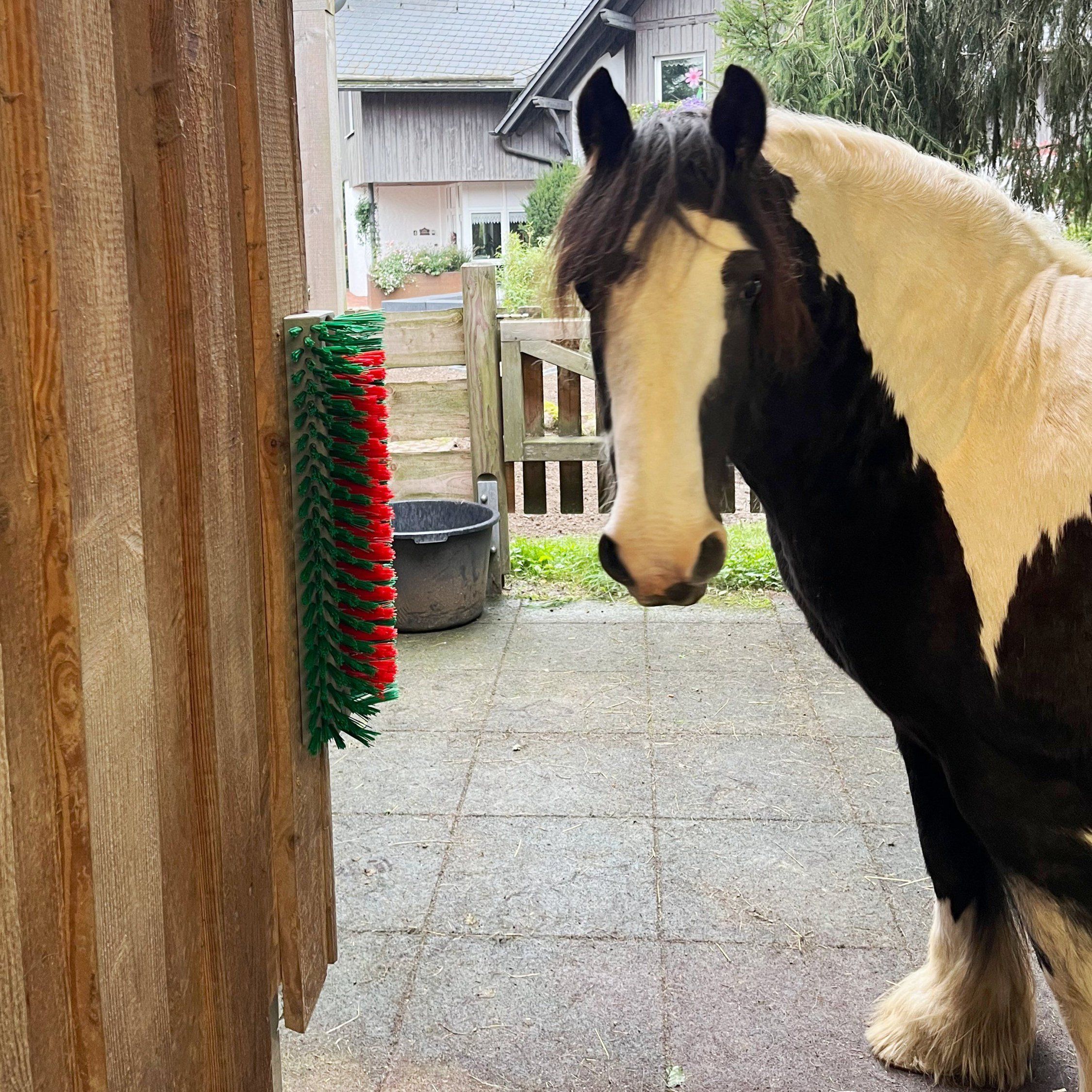 Halbrunde Kratzb?rste f?r Rinder & K?lber, Pferde, Ziegen, gr?n-rot