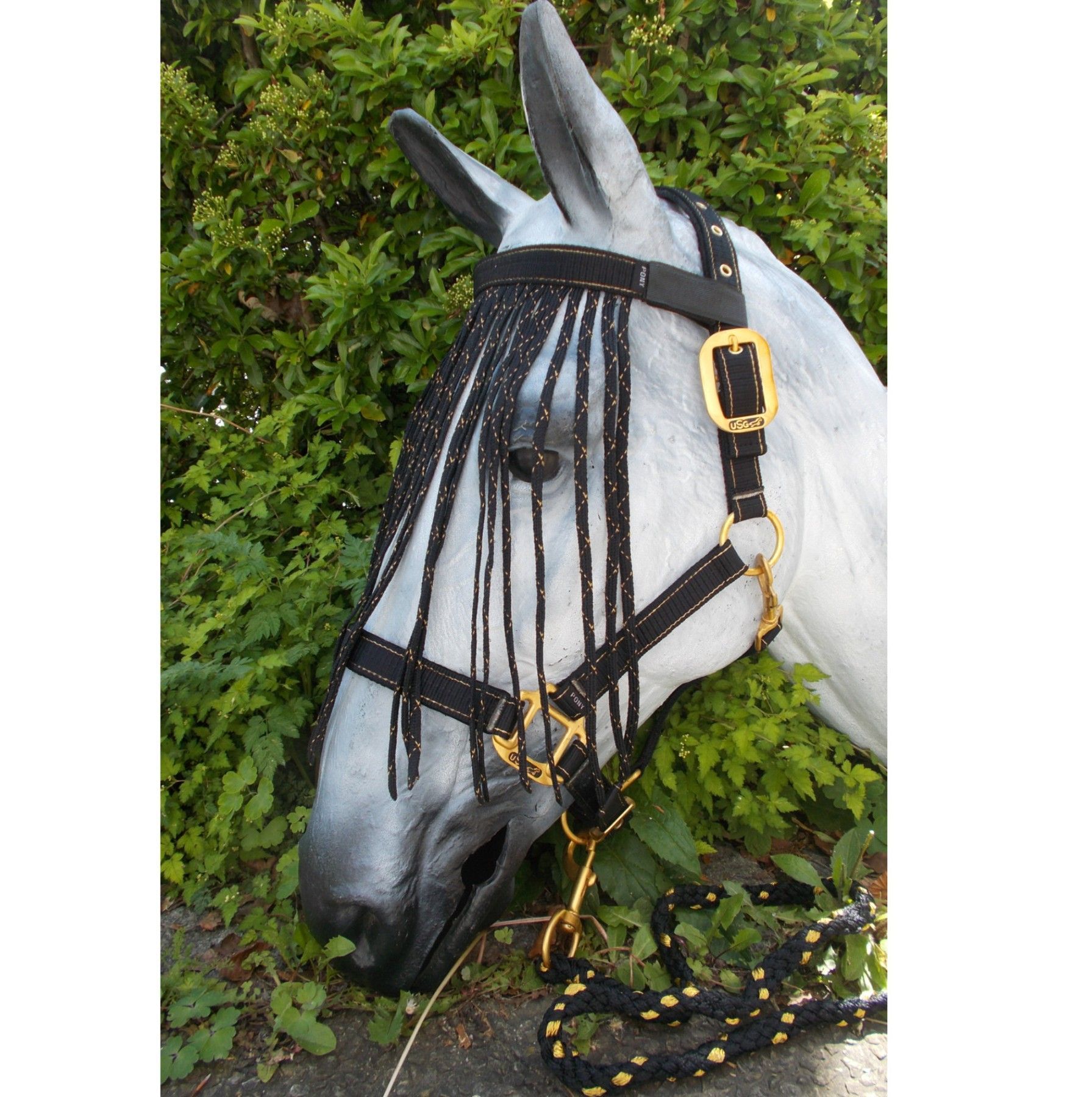 Halfter Set, USG Halfter mit Fliegenfransen und Strick, schwarz-gold, Pony, Fehler