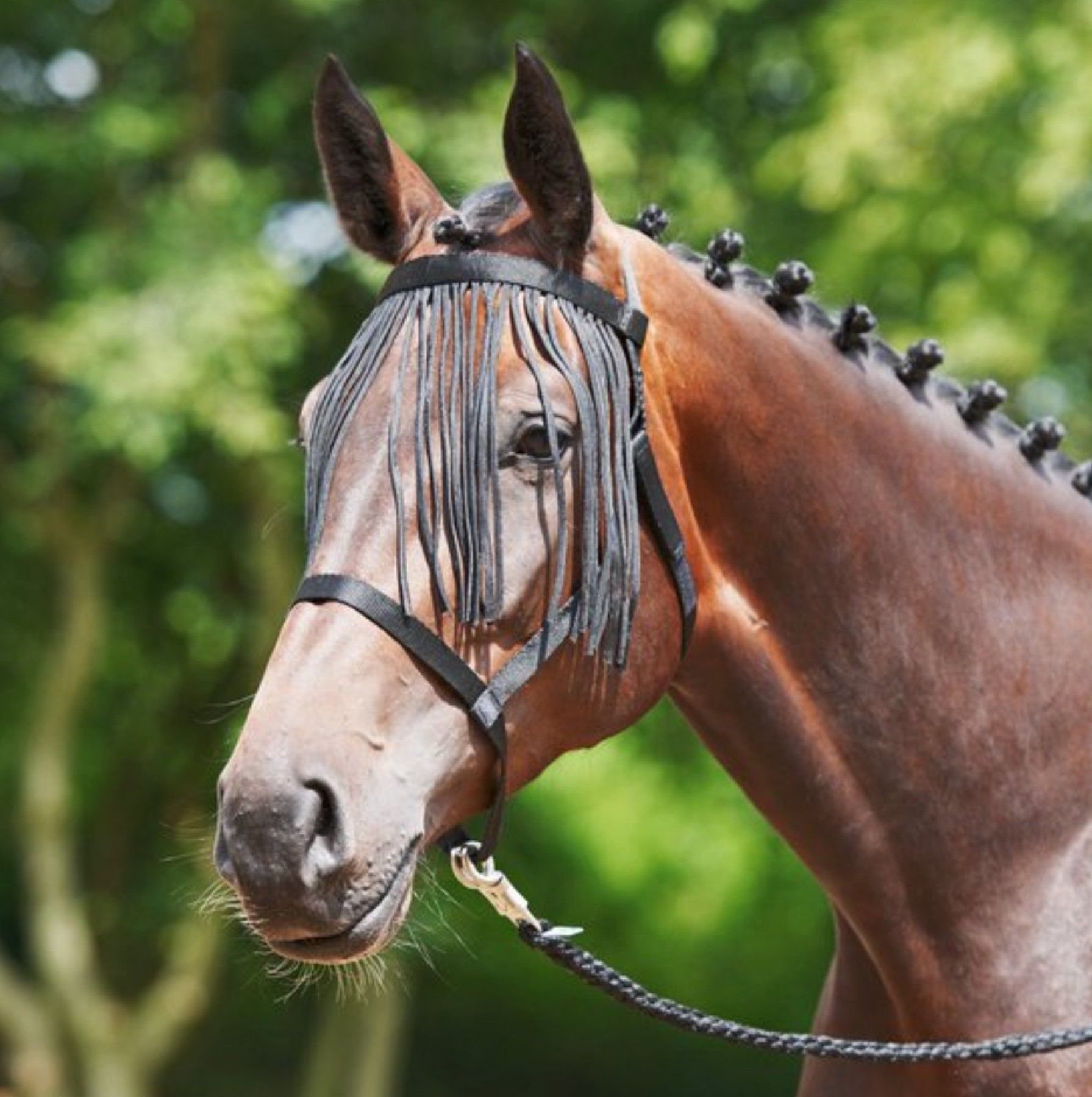 Halfter Weide Fransen, leichtes Weidehalfter o. Metall, Fliegenfransen, schwarz, Pony