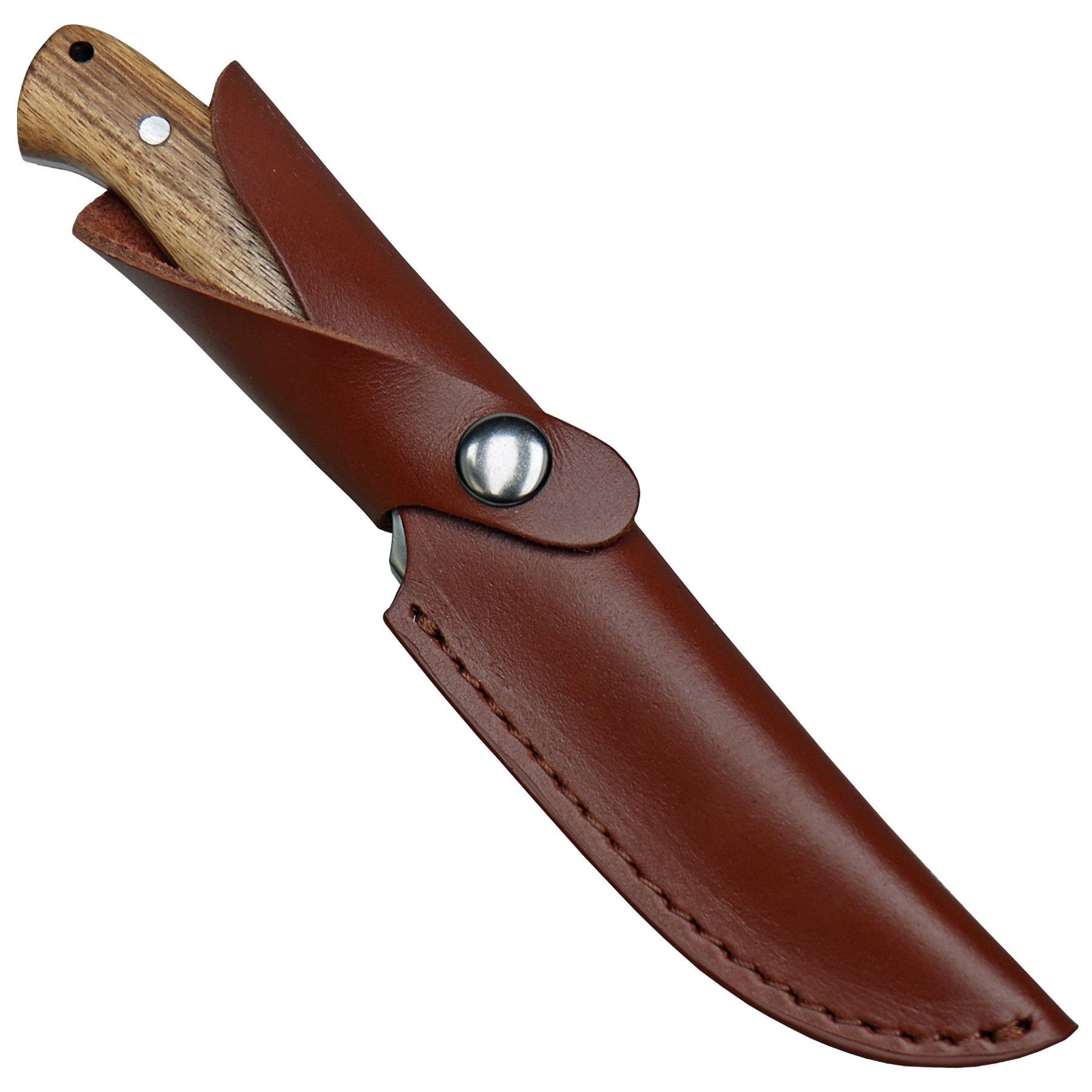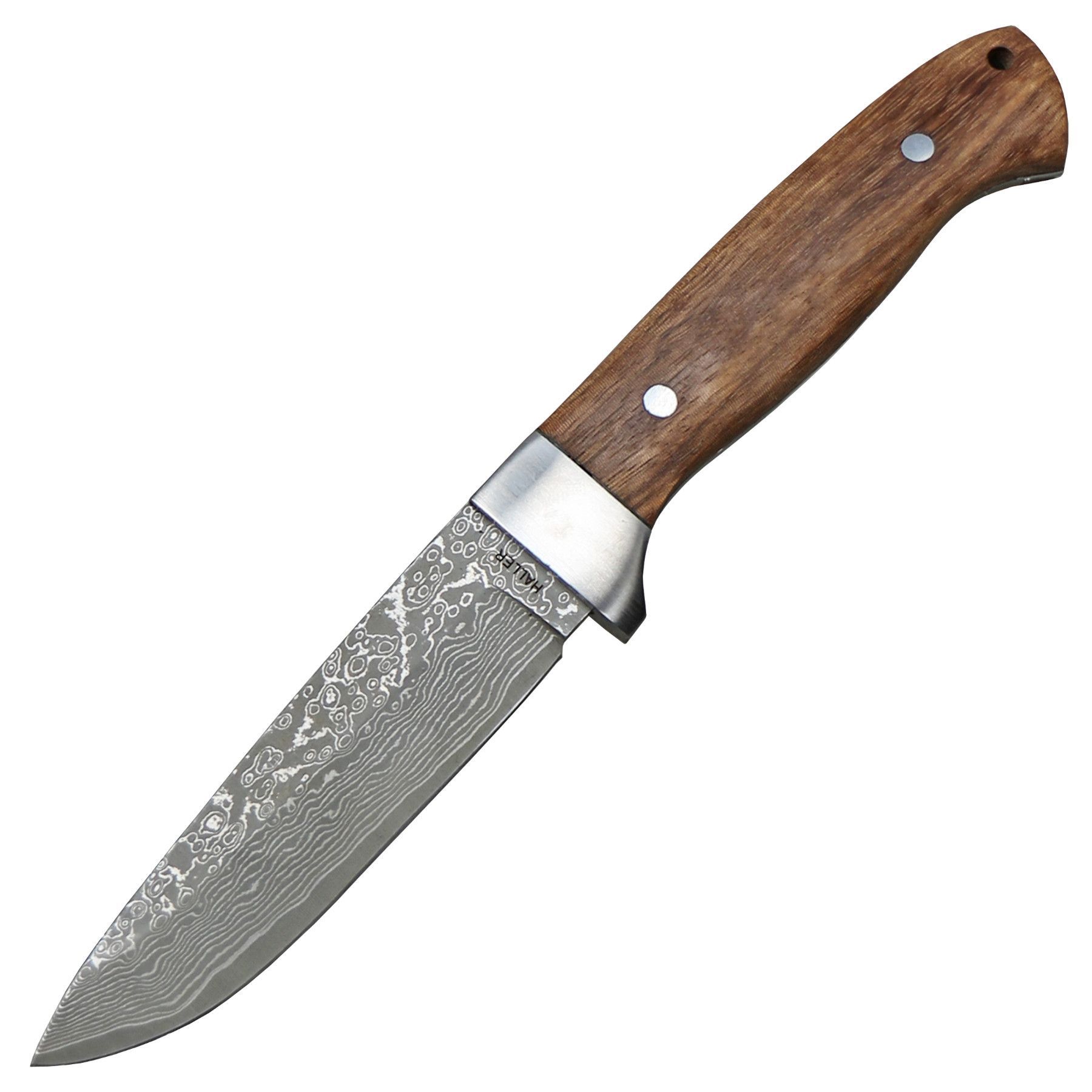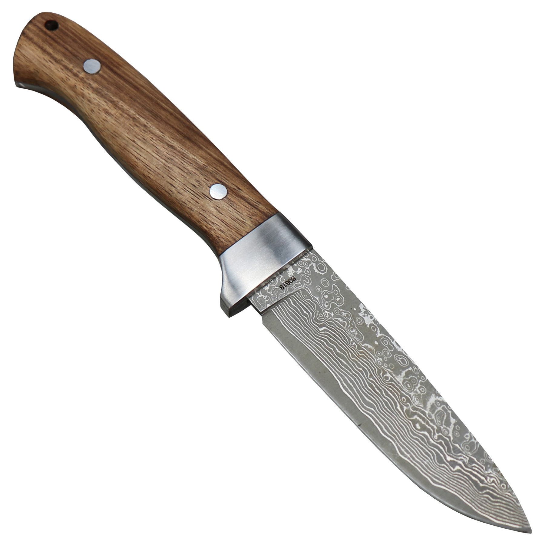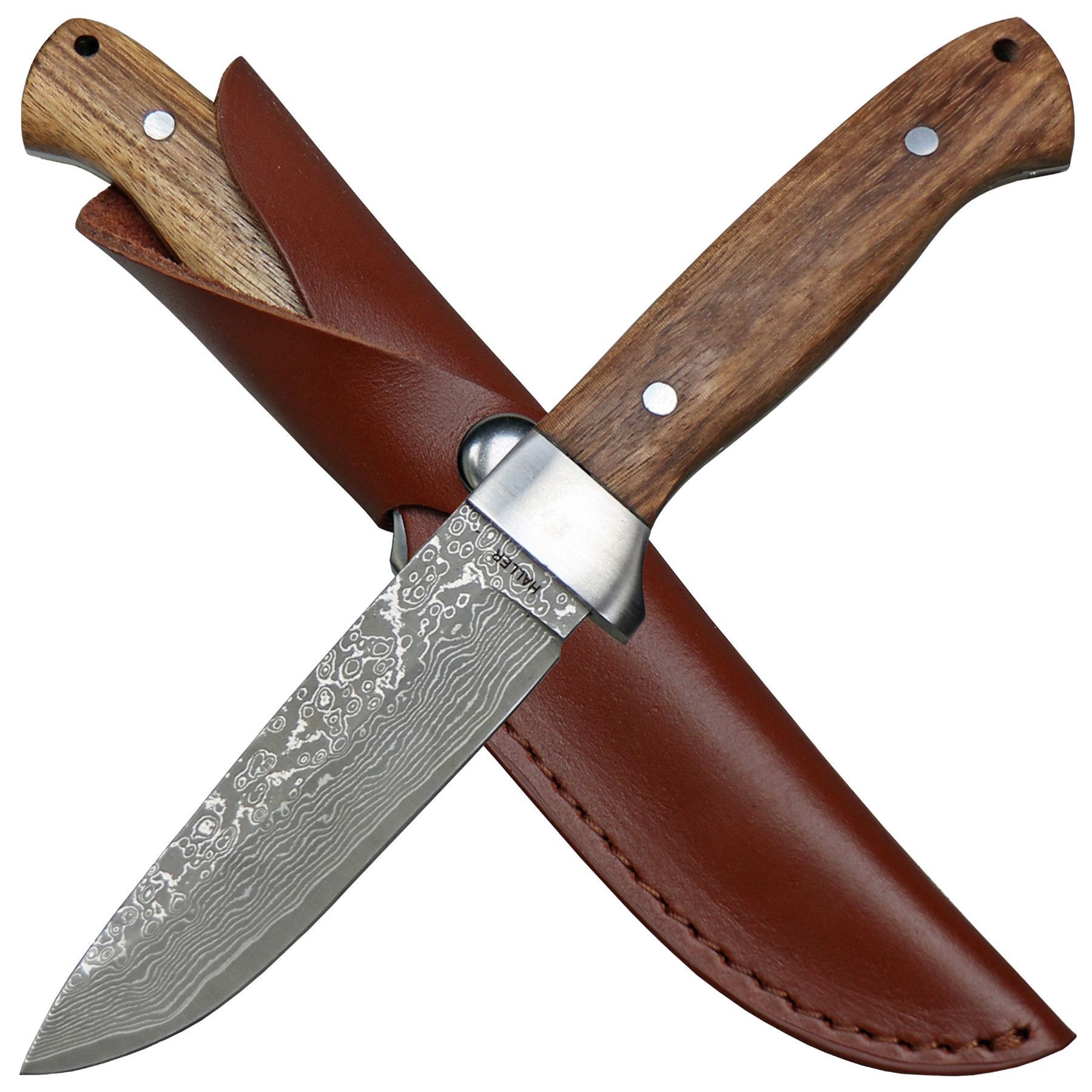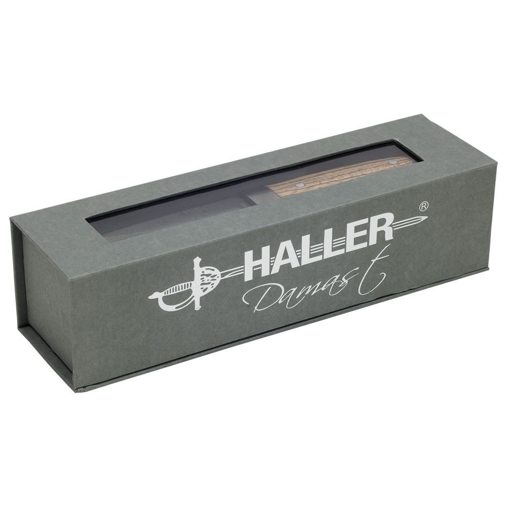 Haller Damast Jagdmesser Outdoormesser Zebraholzgriff Lederscheide Geschenkbox