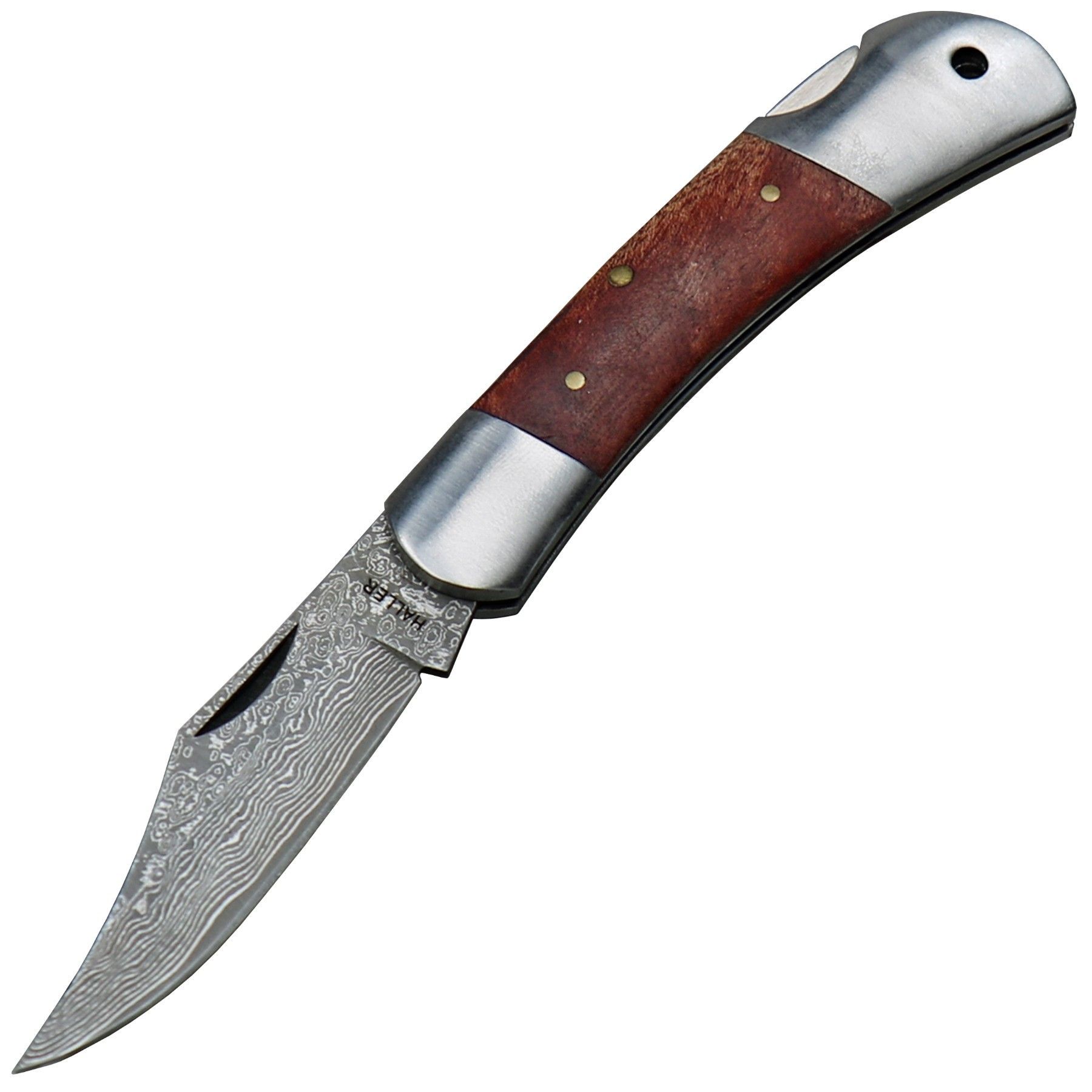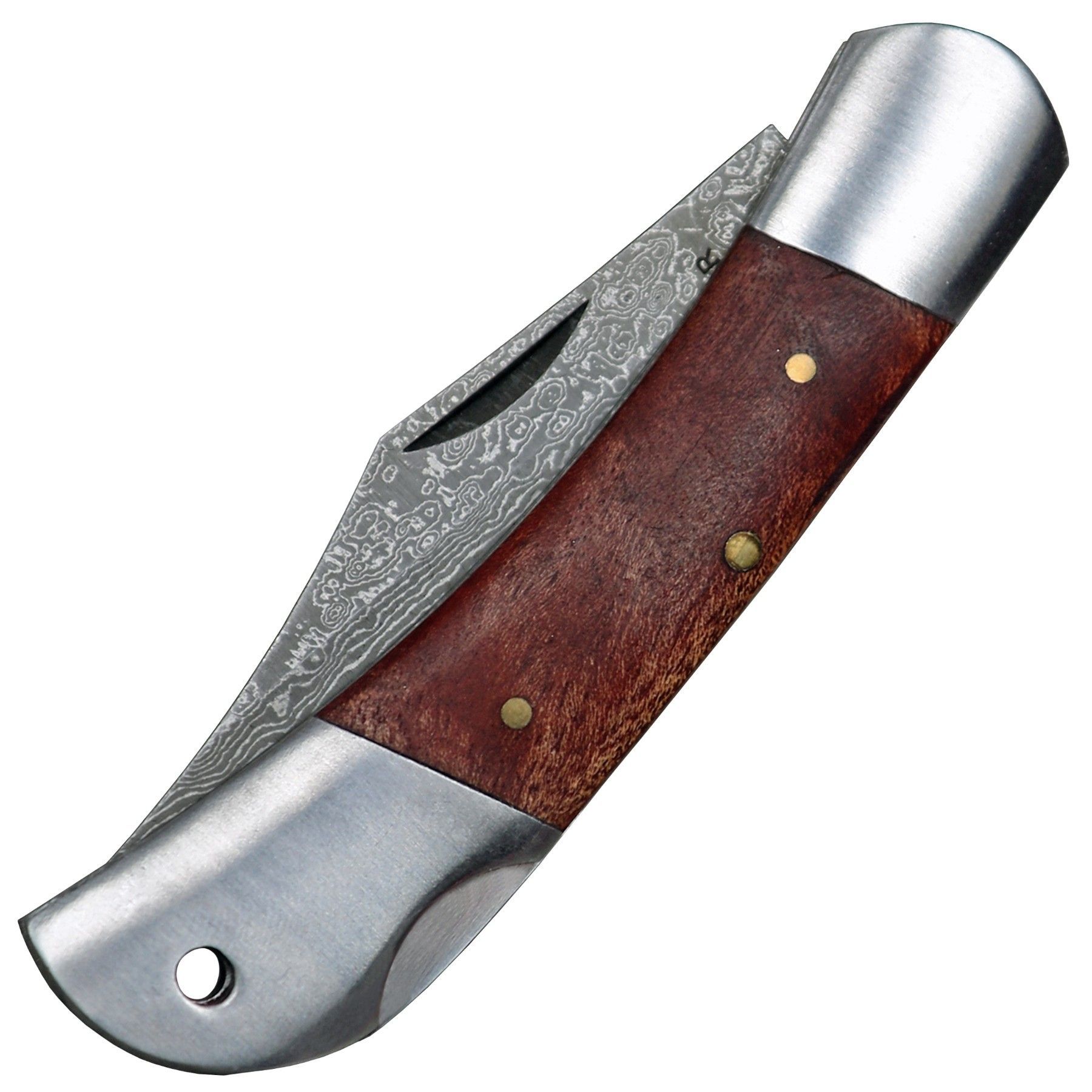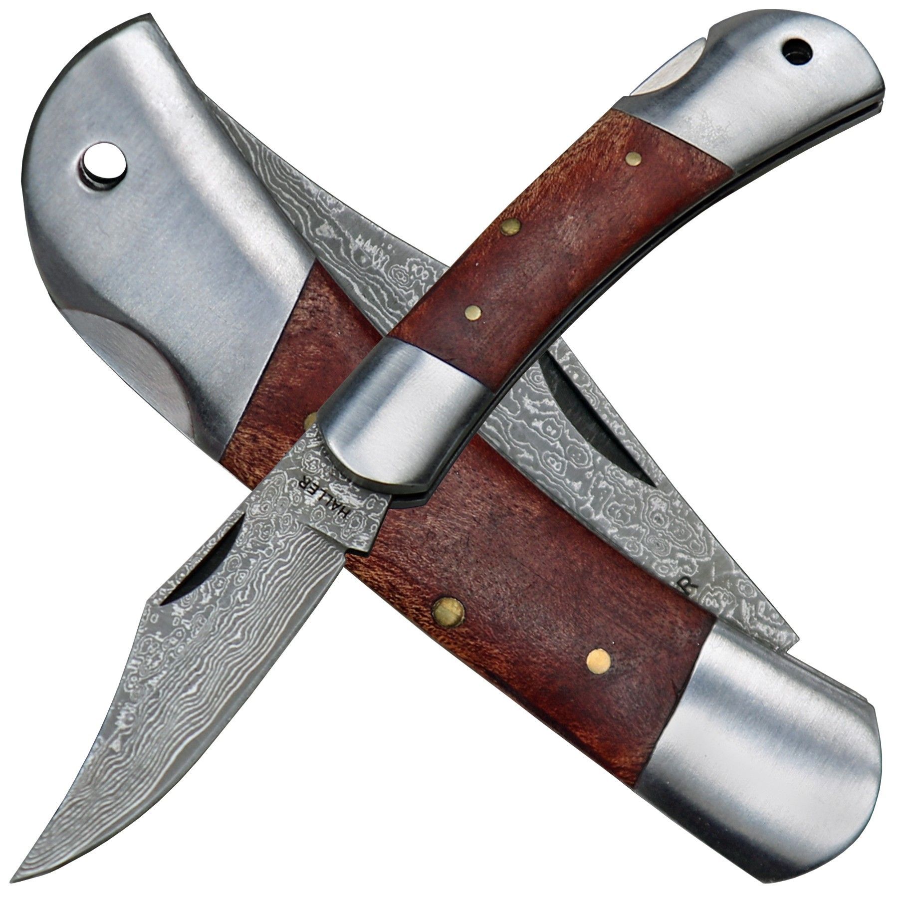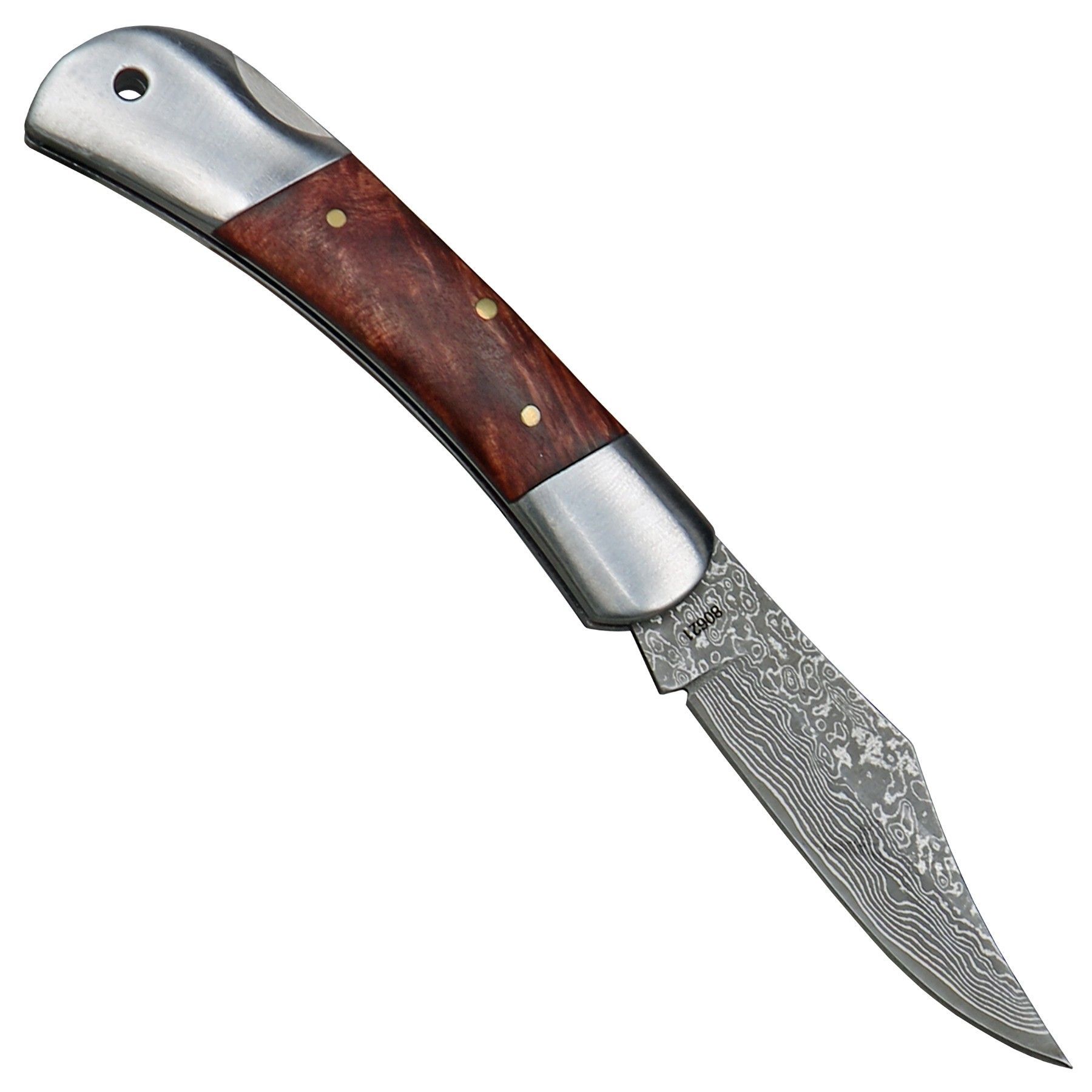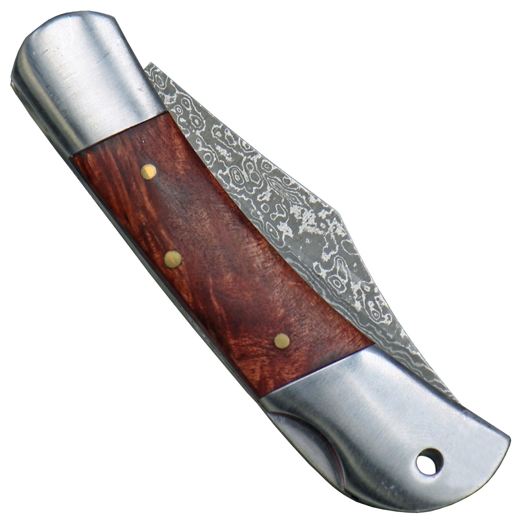 Haller Damast Taschenmesser Hechtklinge 7,5 cm Wurzelholz Backlock Geschenkbox