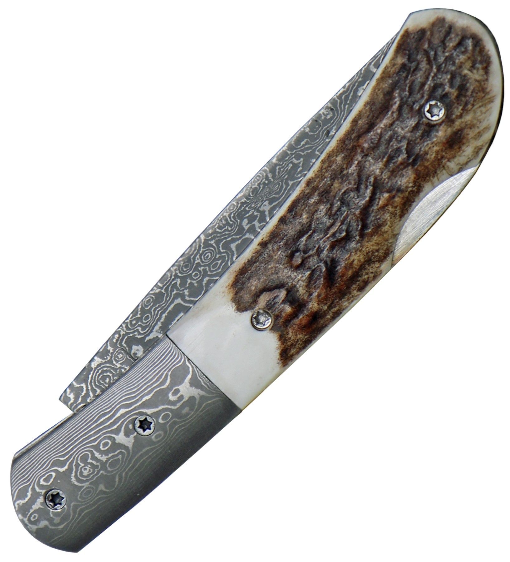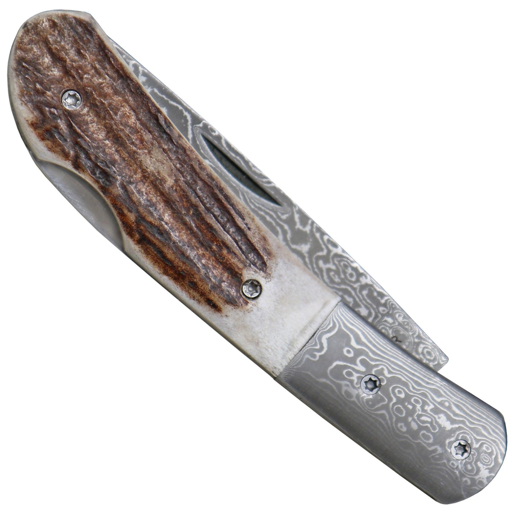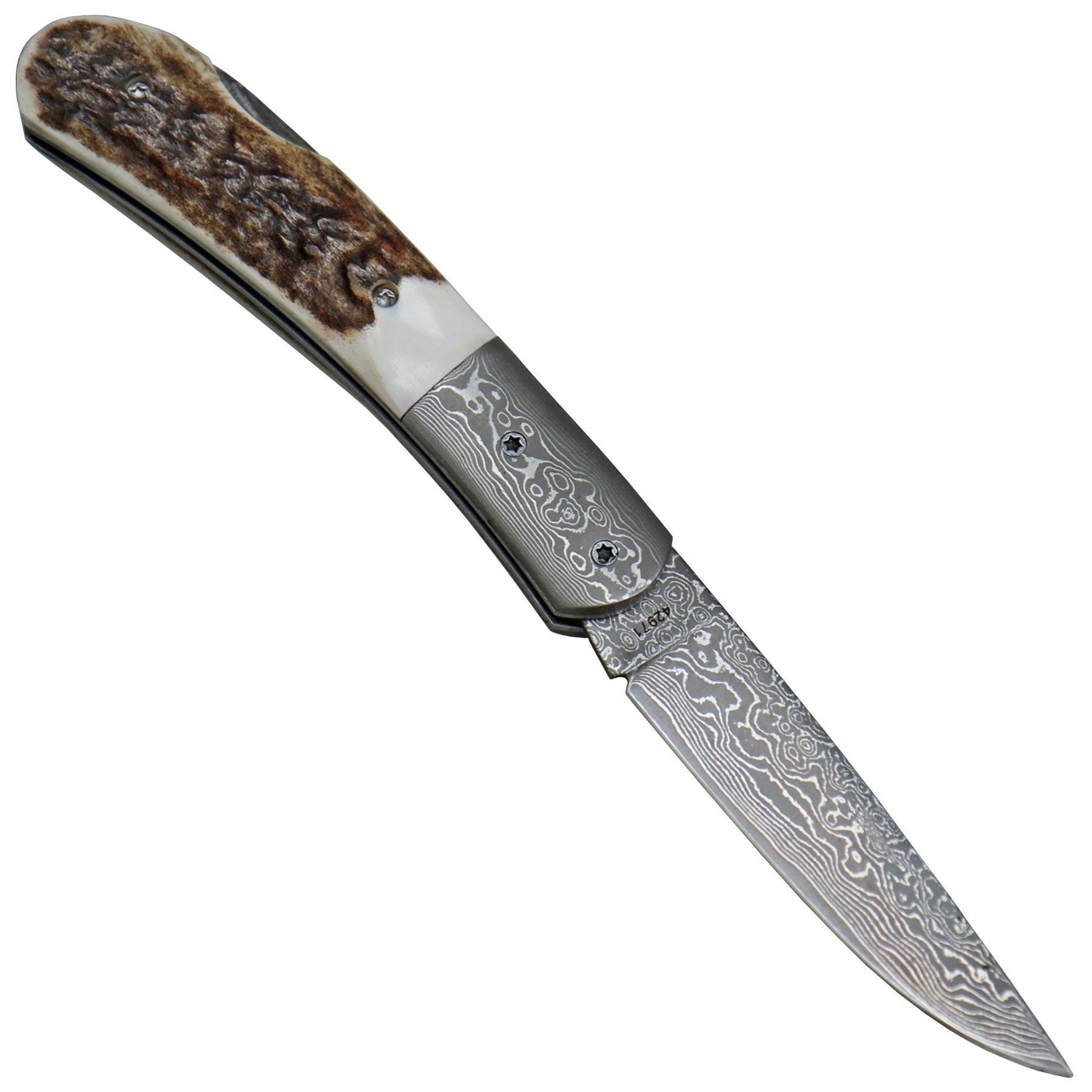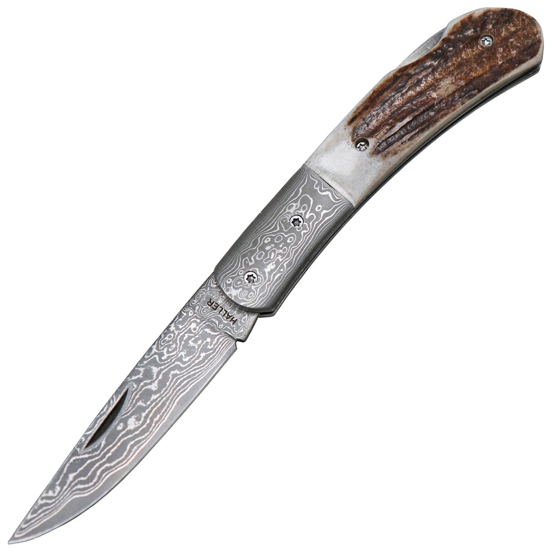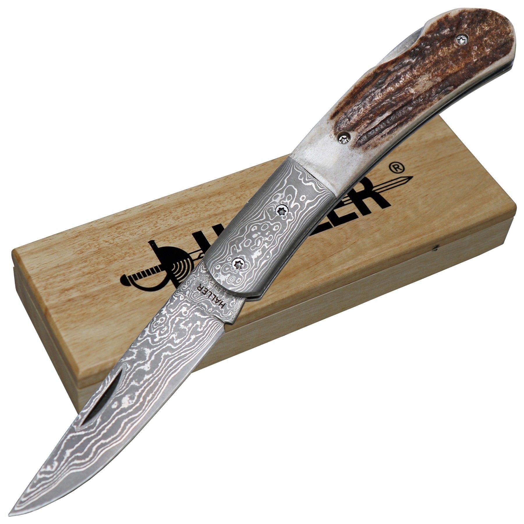 Haller Haller Damast Taschenmesser Hirschhorngriff Backlock Holz-Geschenkbox
