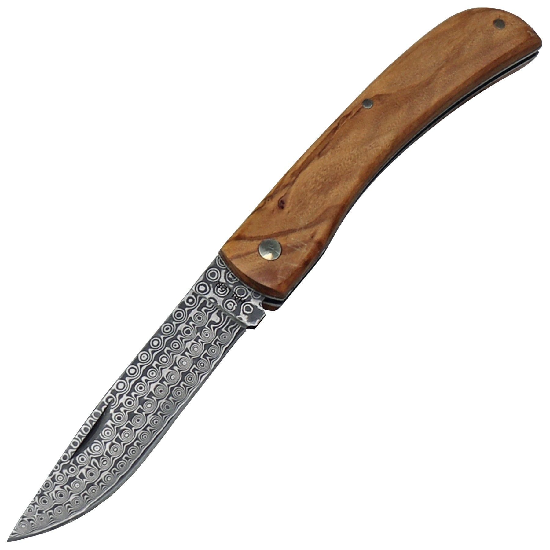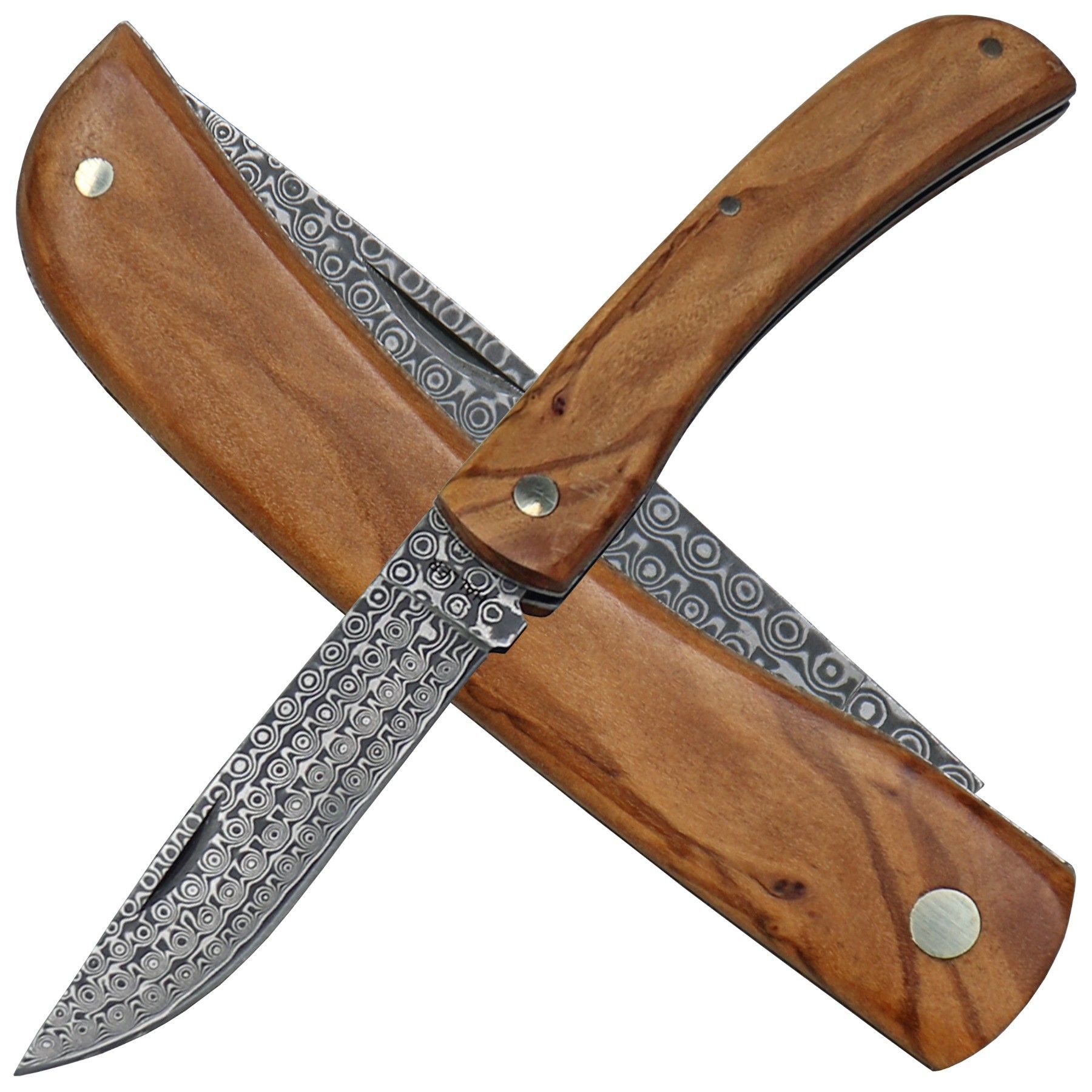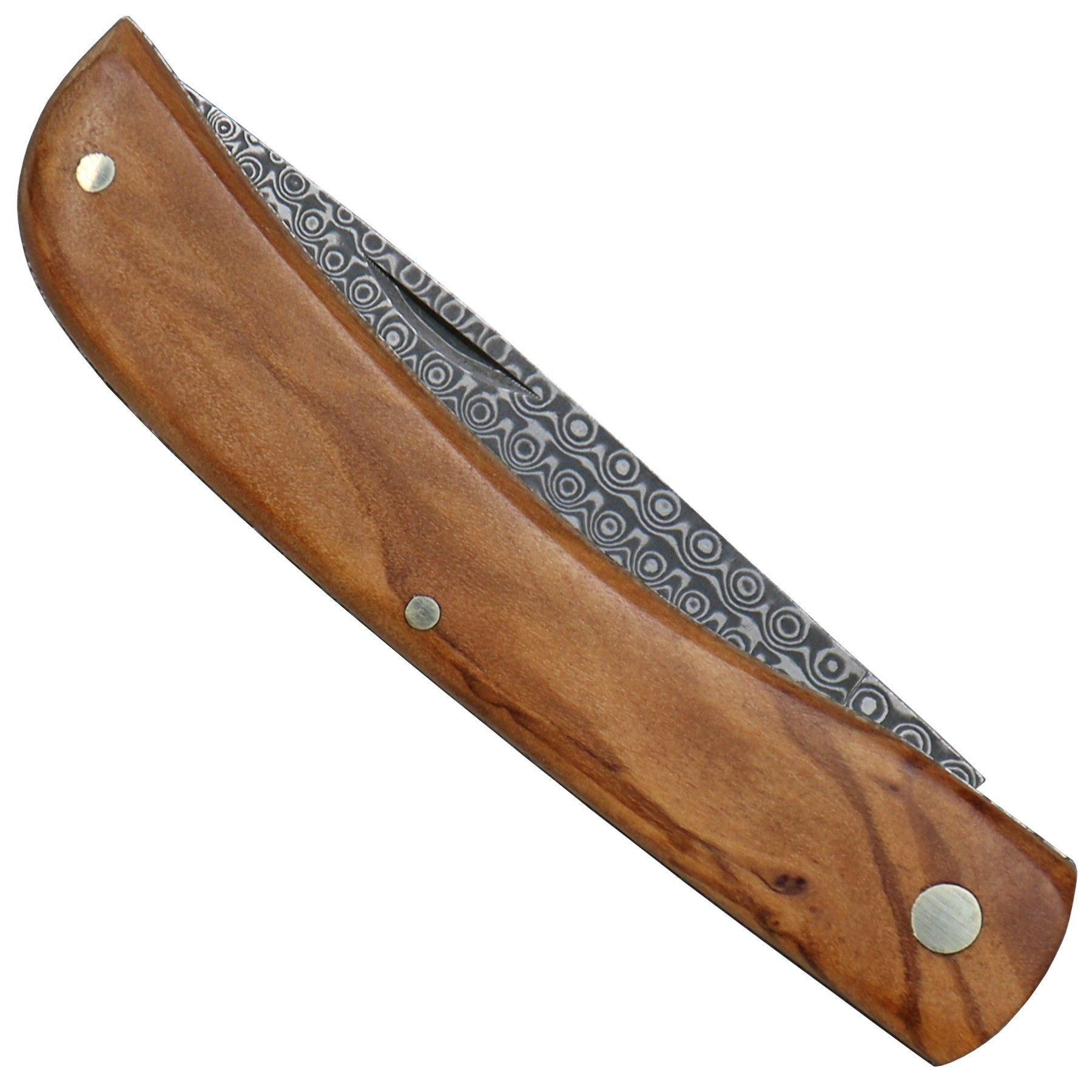 Haller Damast Taschenmesser Klappmesser Olivenholz Etui und Geschenkbox