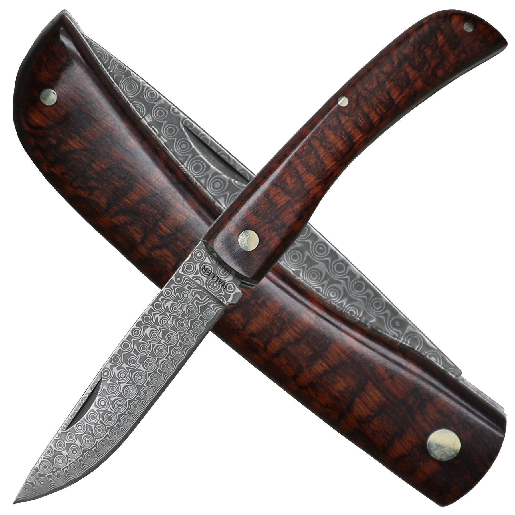 Haller Damast Taschenmesser Klappmesser Schlangenholz Nagelrille Etui Geschenkbox