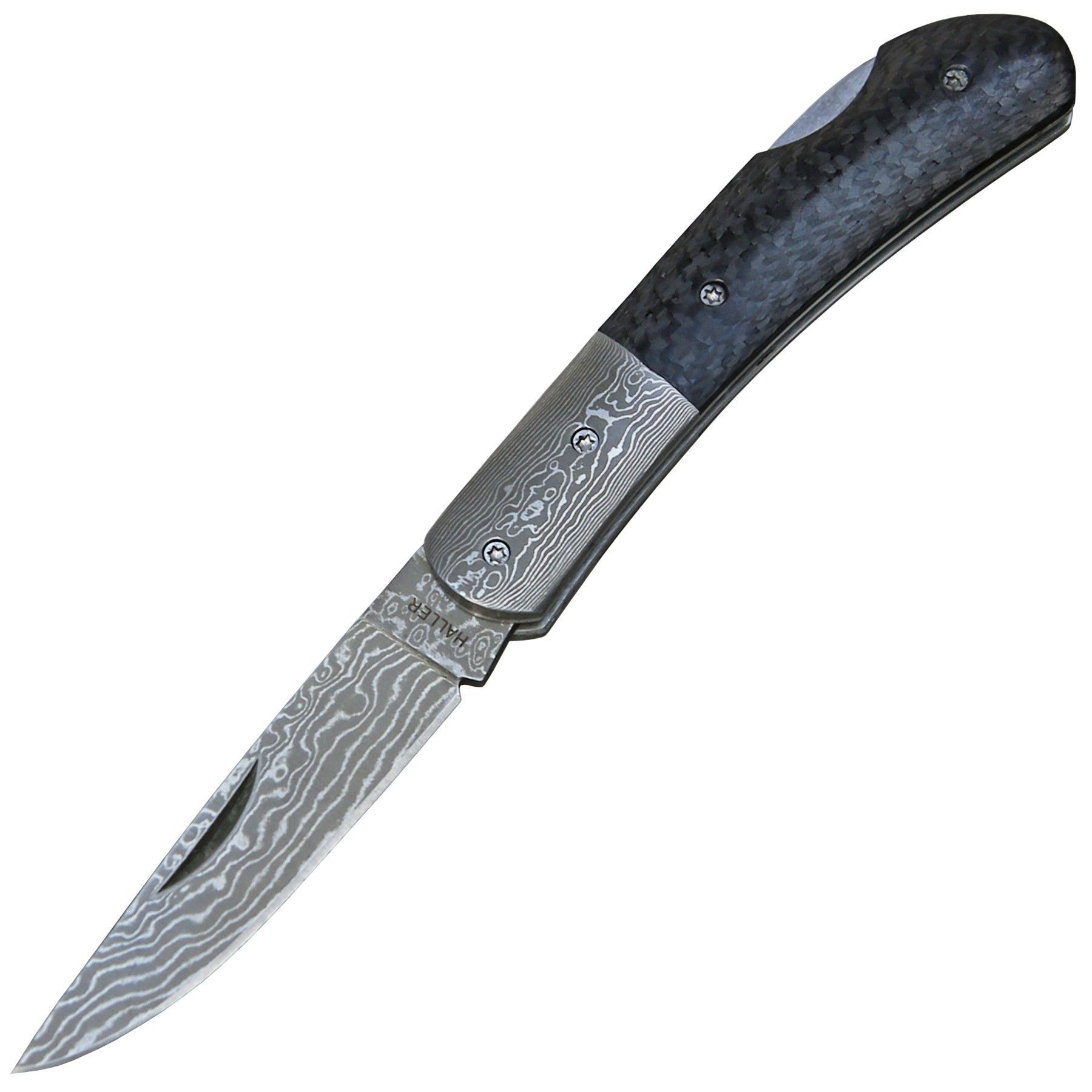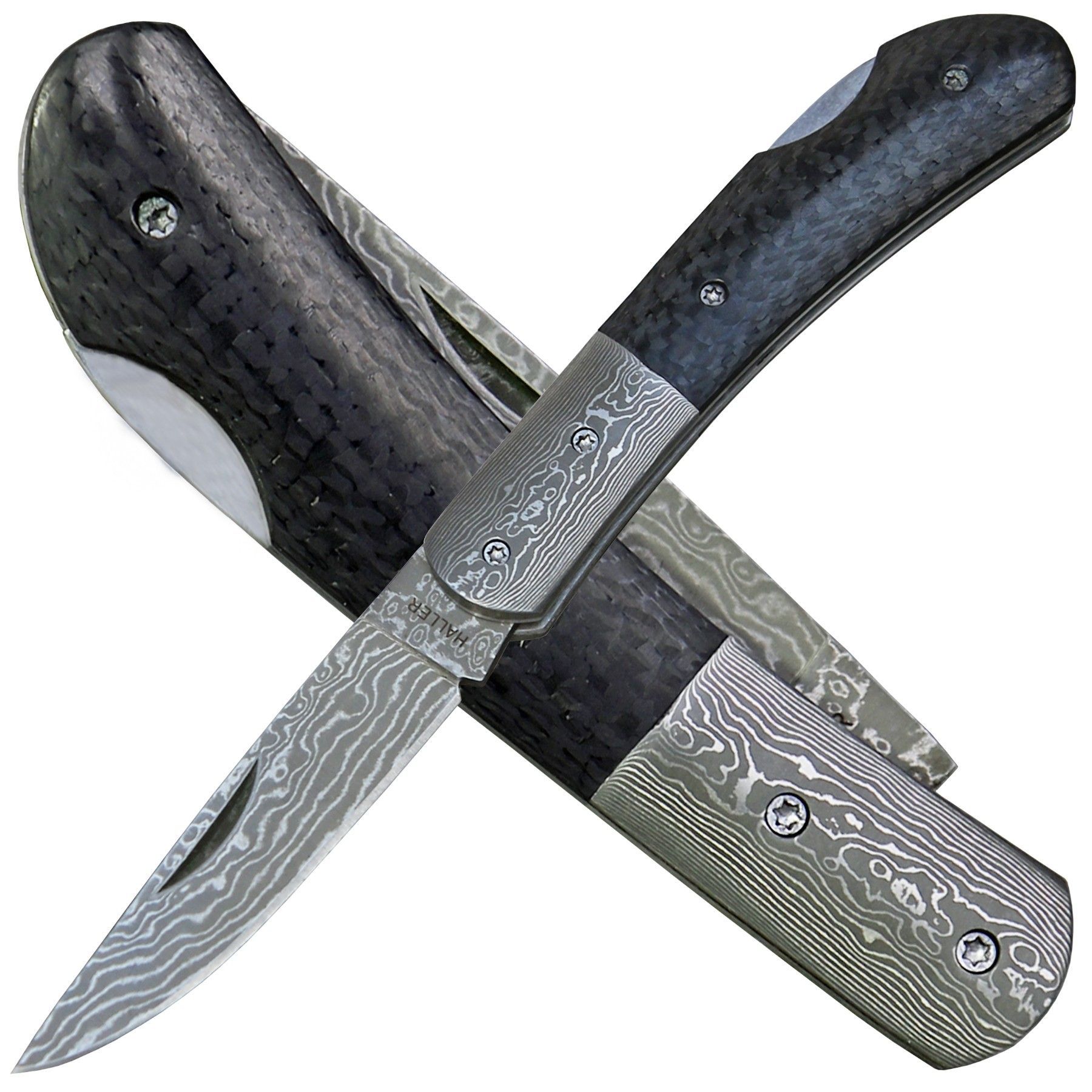 Haller Haller Damast Taschenmesser mit Carbon Fiber Griff