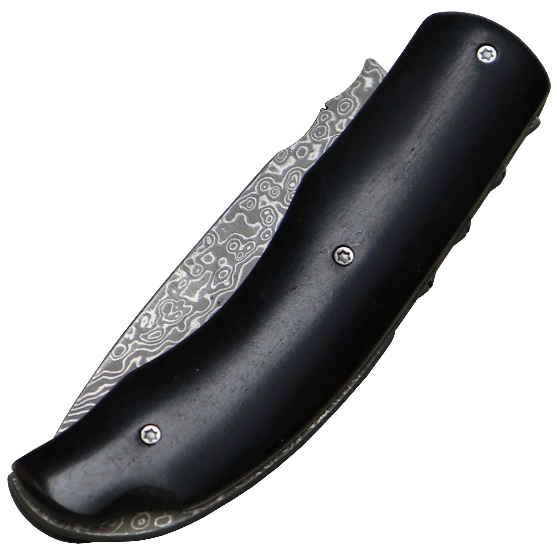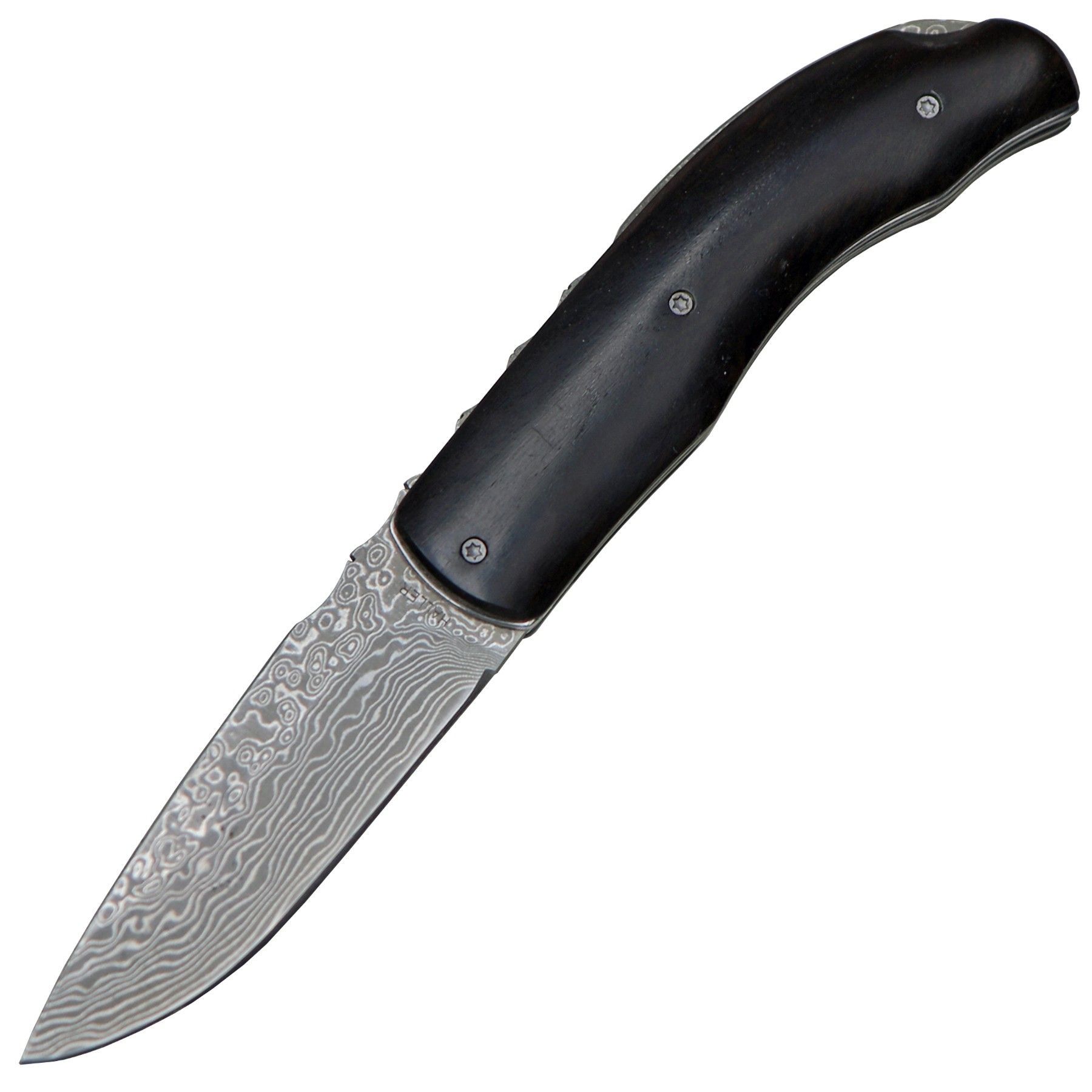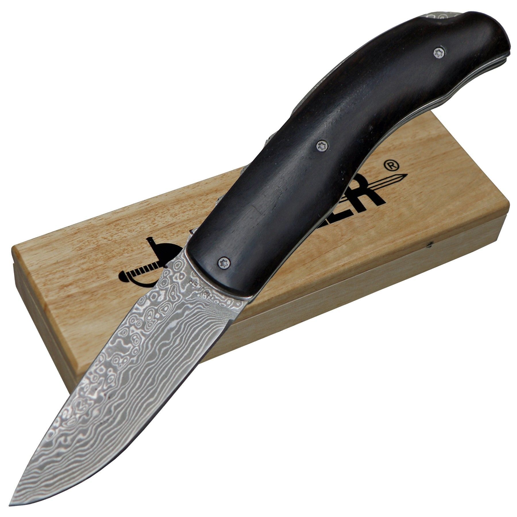 Haller Haller Damast Taschenmesser mit Ebenholzgriff Backlock Holz-Geschenkbox