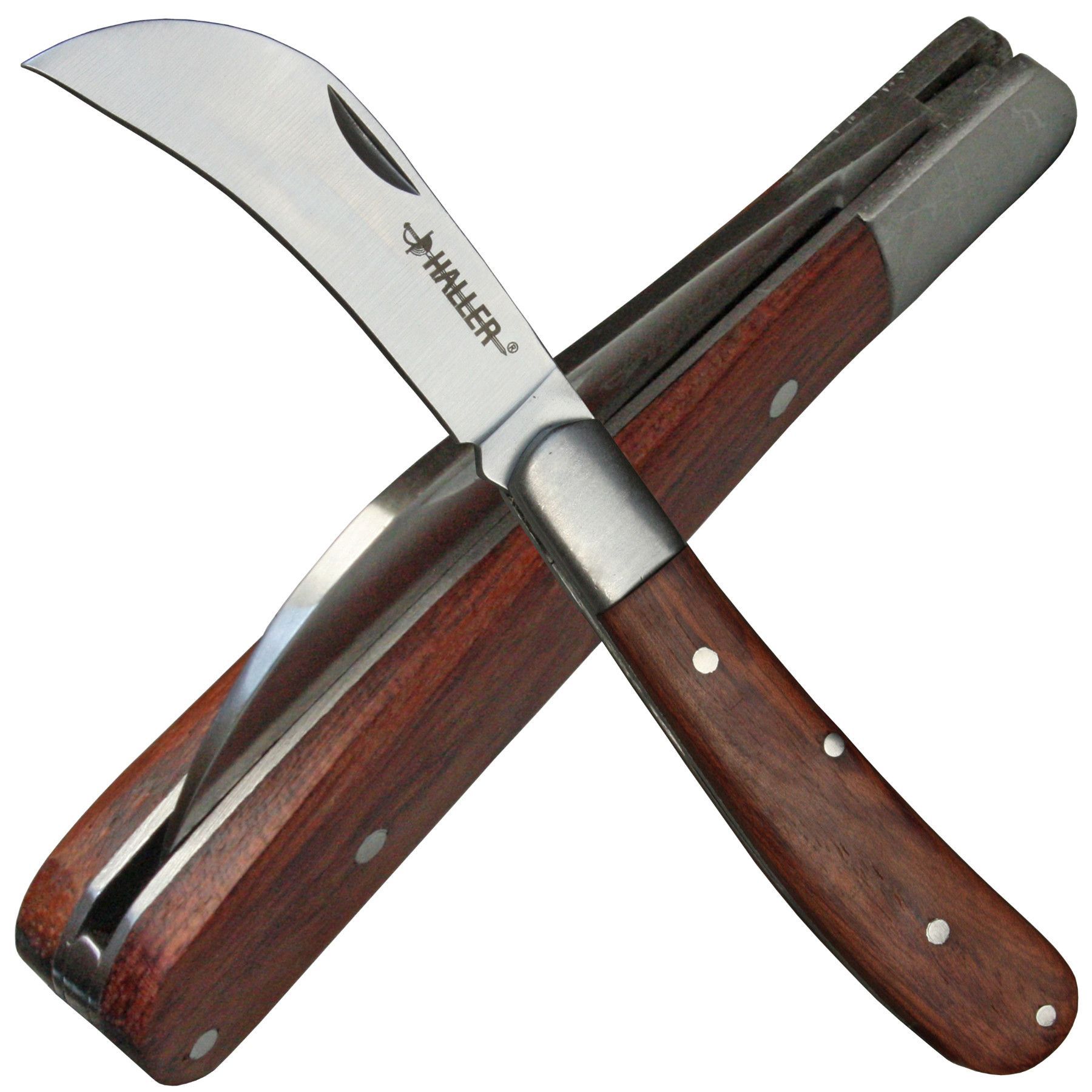 Haller Haller Gartenmesser Taschenmesser Gartenhippe gebogene Klinge Holzgriff