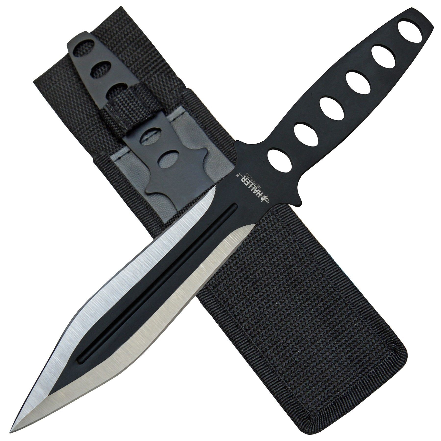 Haller Haller großes Wurfmesser schwarz/ silber mit Nylonscheide (18 + )