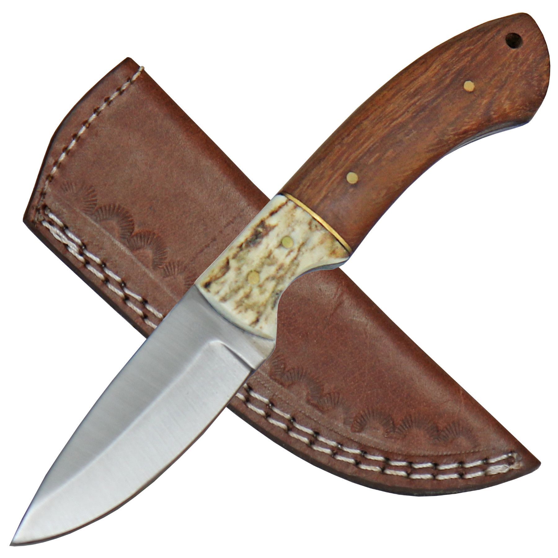 Haller Haller Jagd- Outdoormesser klein Hirschhorn/Holz Griff Ledersteckscheide