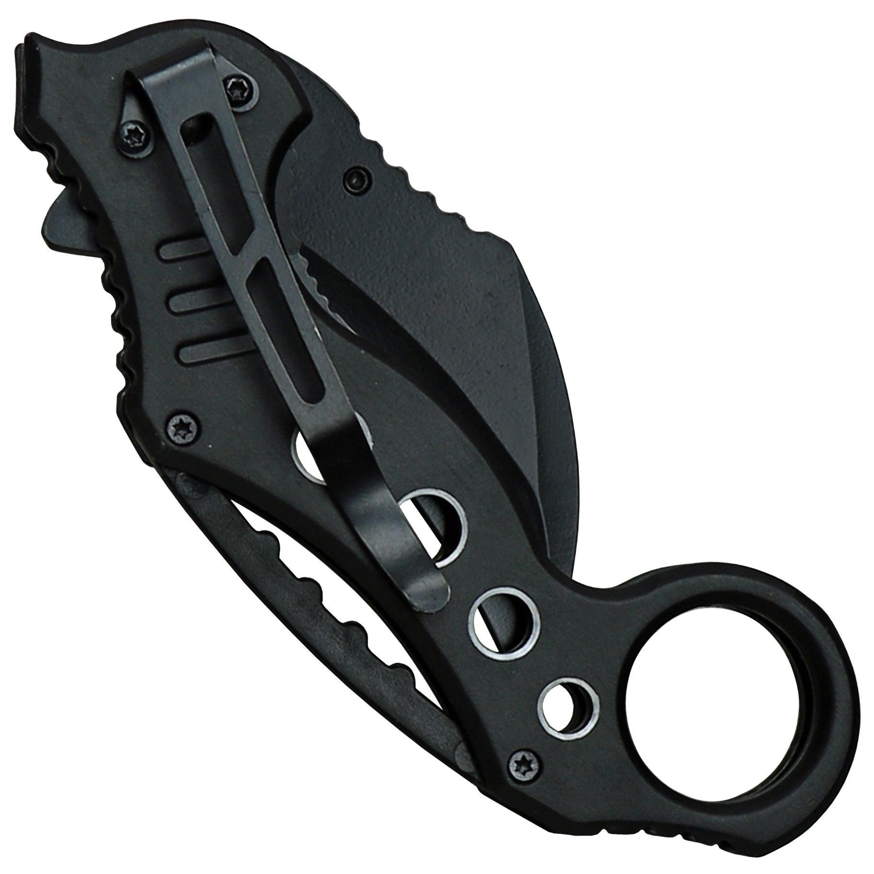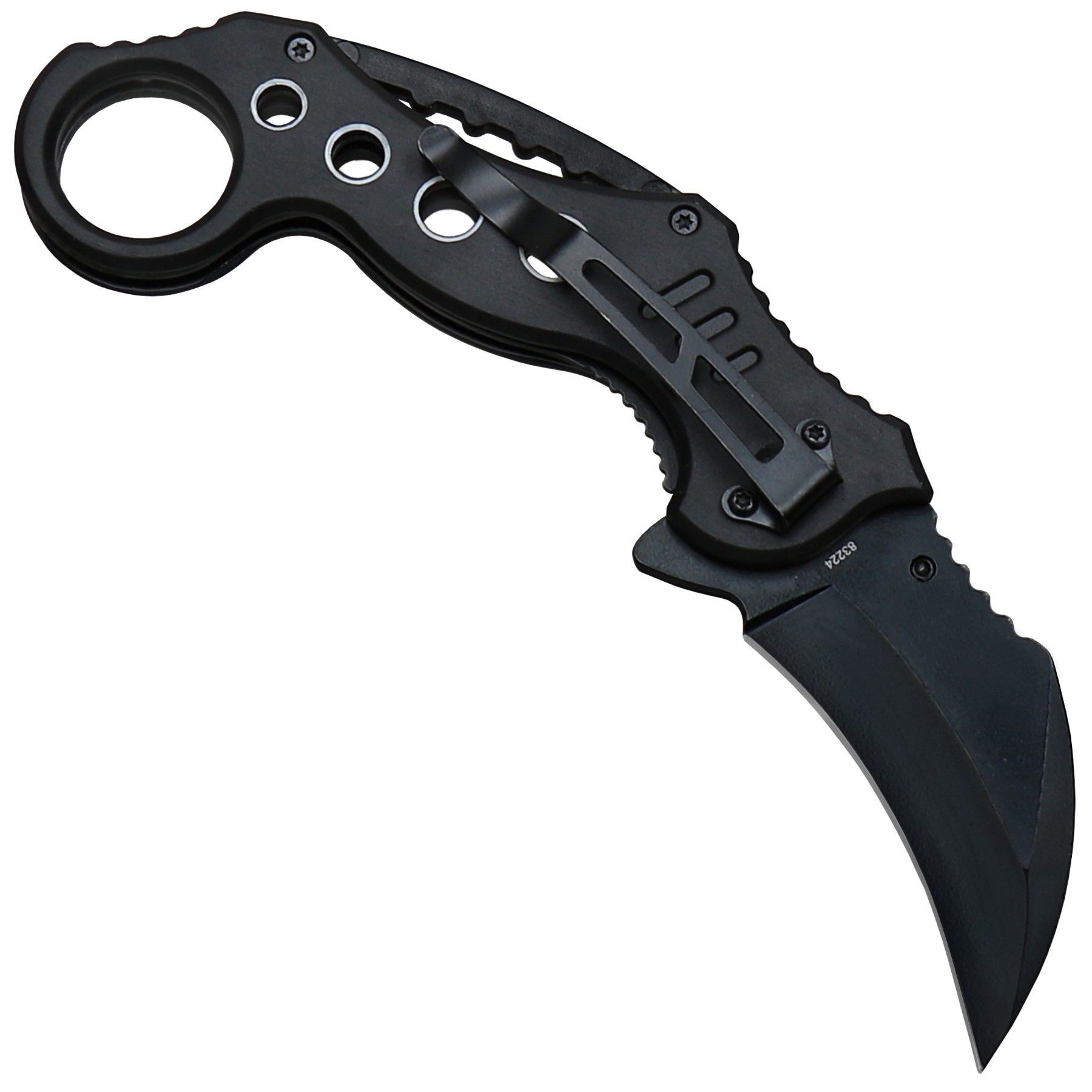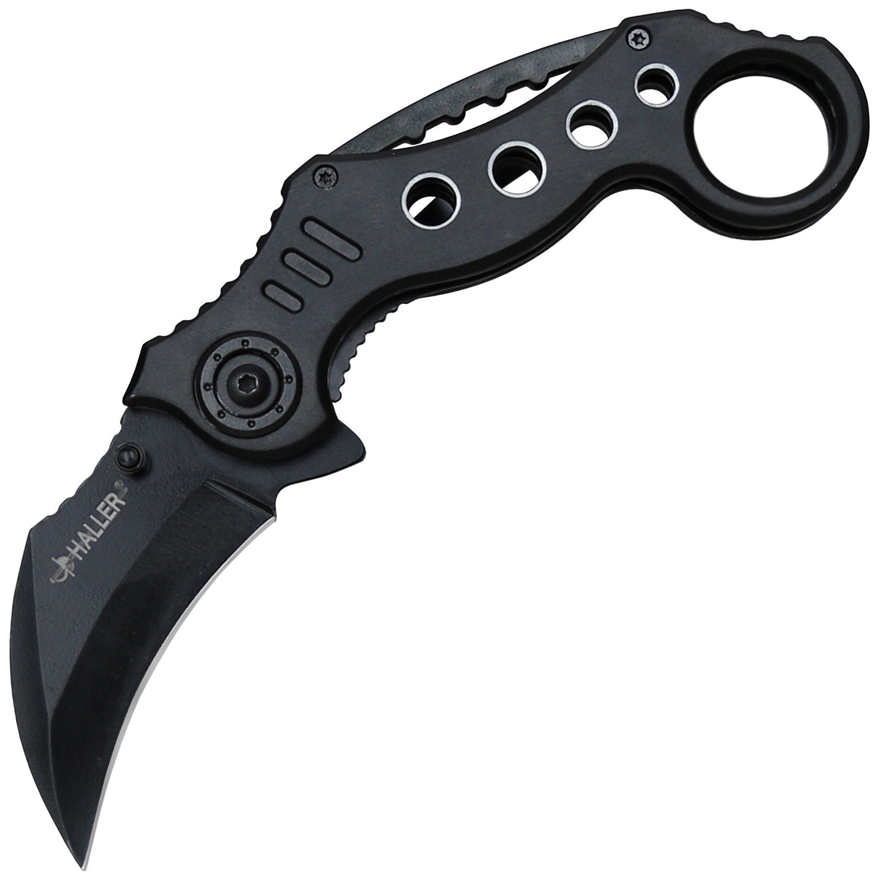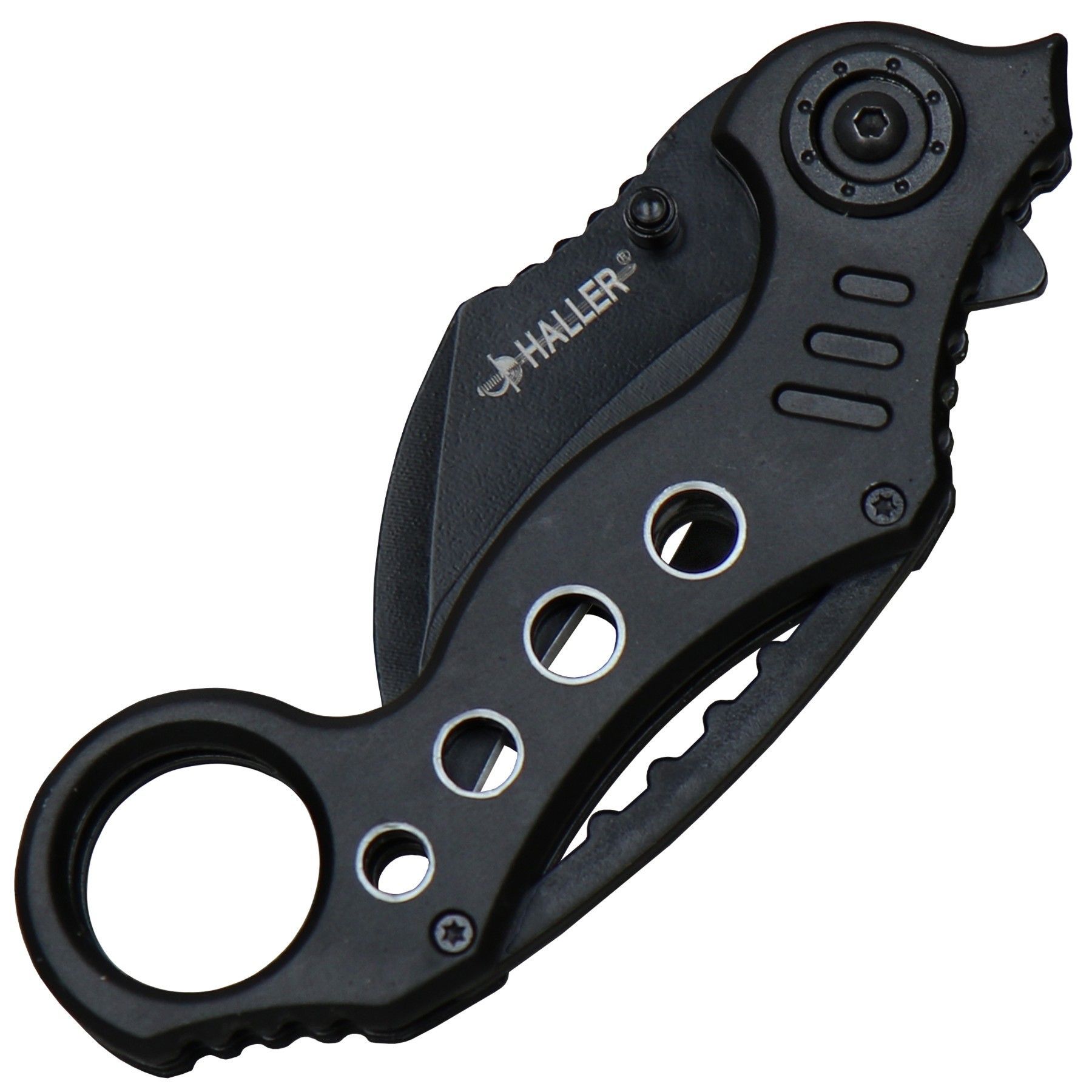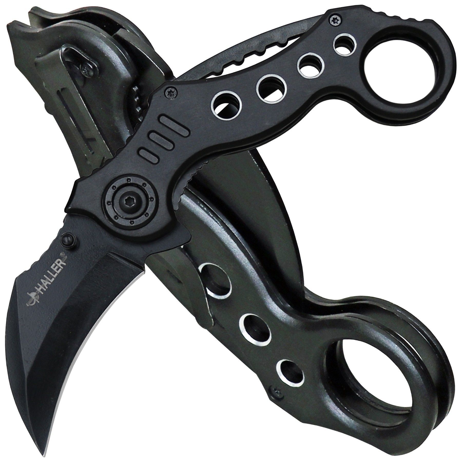 Haller Haller Karambit Taschenmesser, schwarz, federunterstützt mit Gürtelclip (18 + )