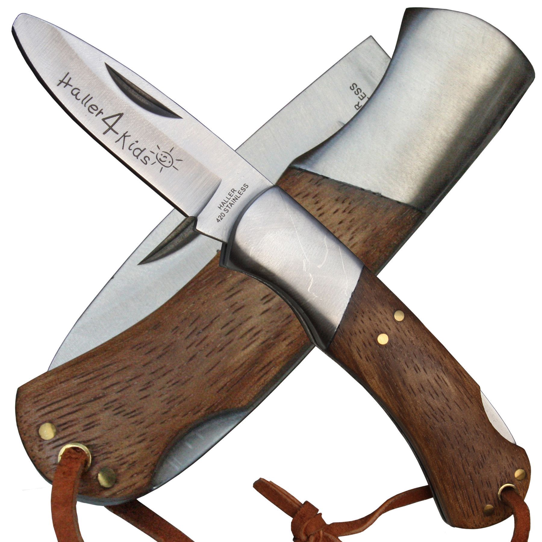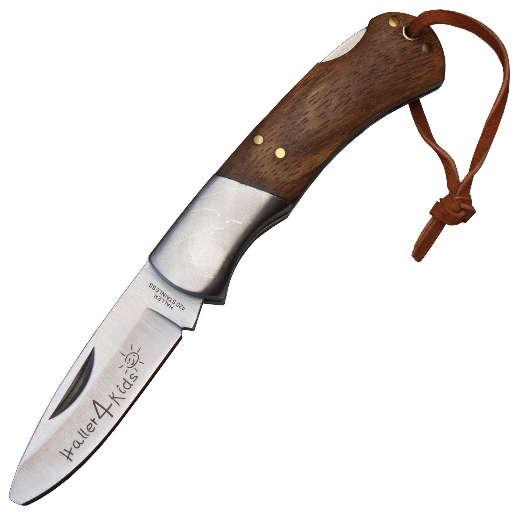 Haller Haller Kinder Taschenmesser gerundete Klinge Zebraholz Lederiemen