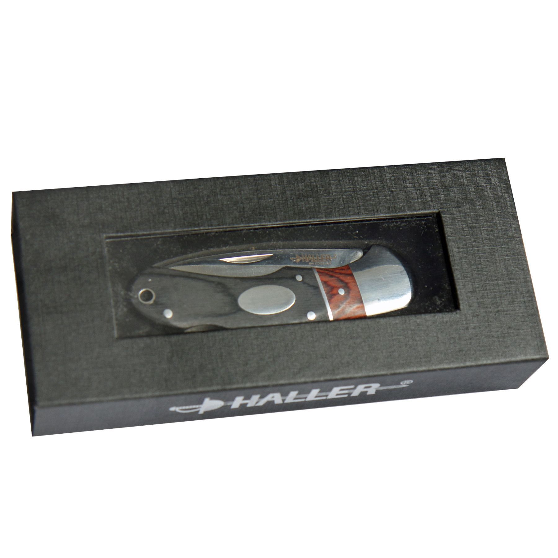 Haller Haller kleines Taschenmesser "Backlock" Pakkaholz Klappmesser inkl. Geschenkbox