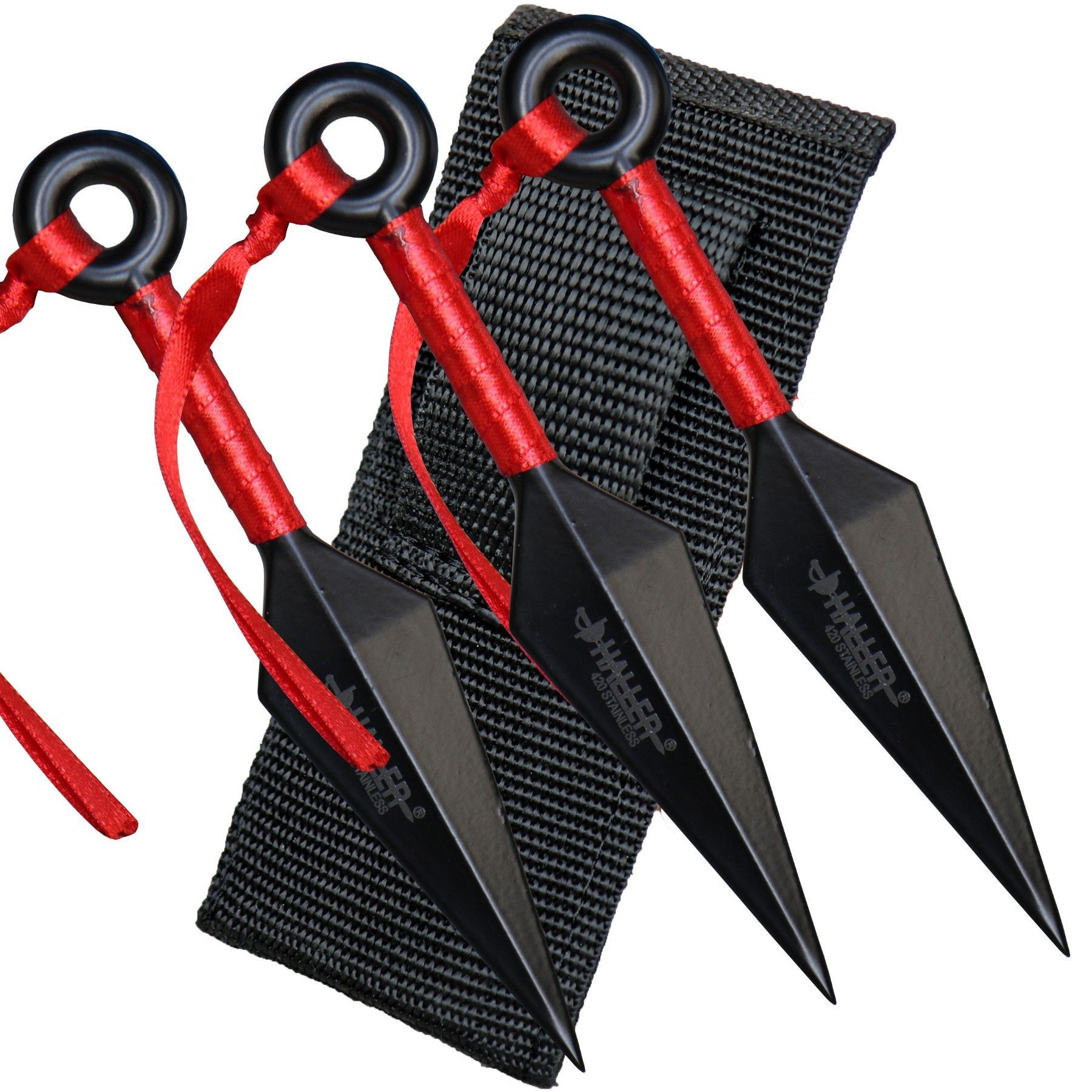 Haller Haller kleines Wurfmesser Set Kunai 3 tlg. mit Zierband Nylonscheide (18 + )