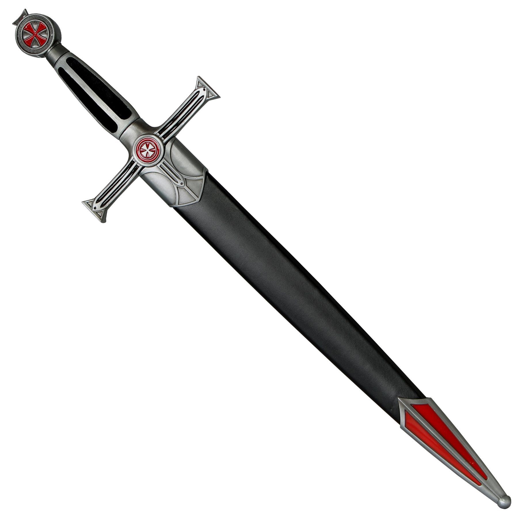 Templer Deko Kurzschwert Kreuzritter mit Scheide schwarz-rot verziert