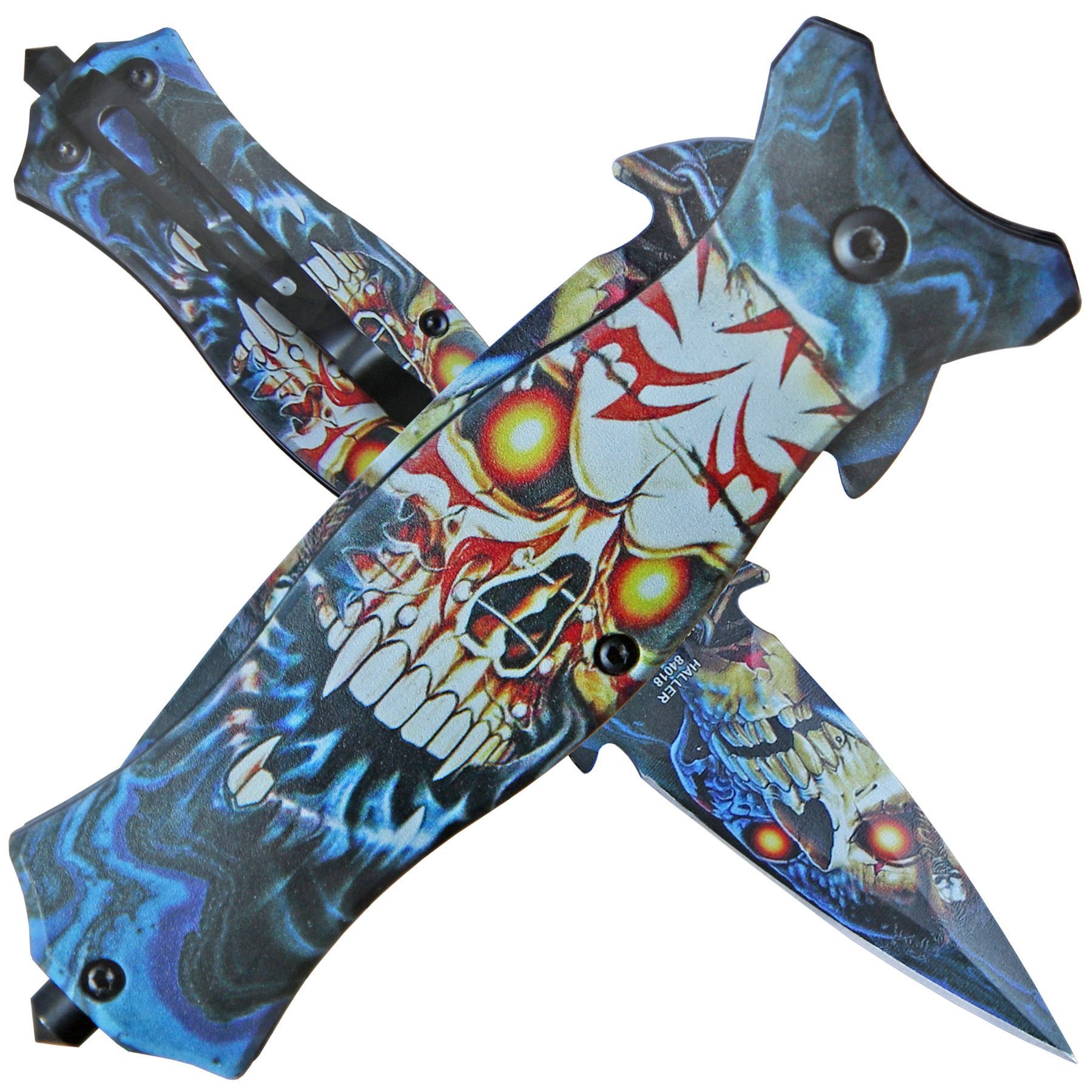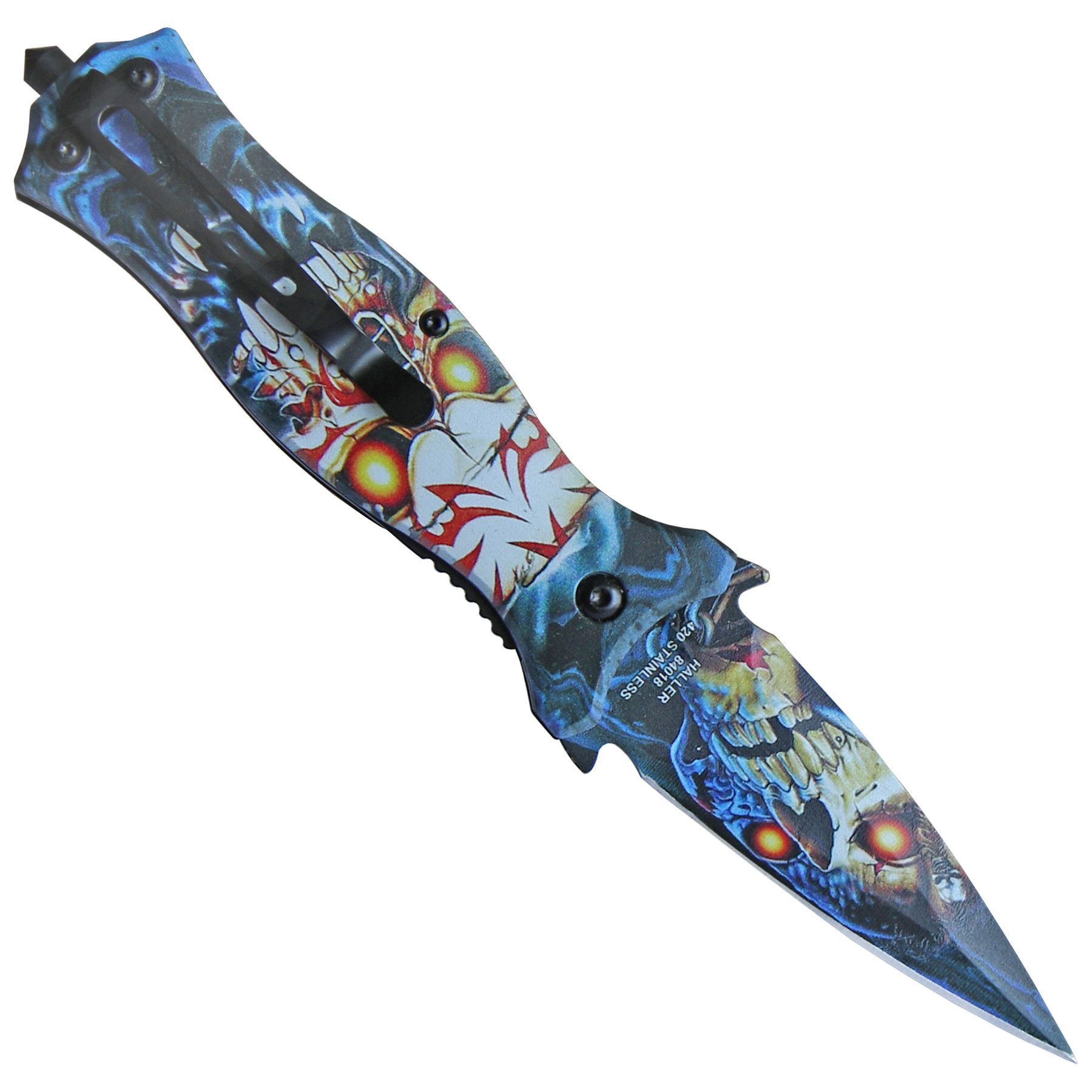Haller Haller "Nightmare" Stiletto Taschenmesser Kunststoffschalen blau-mehrfarbig mit Clip