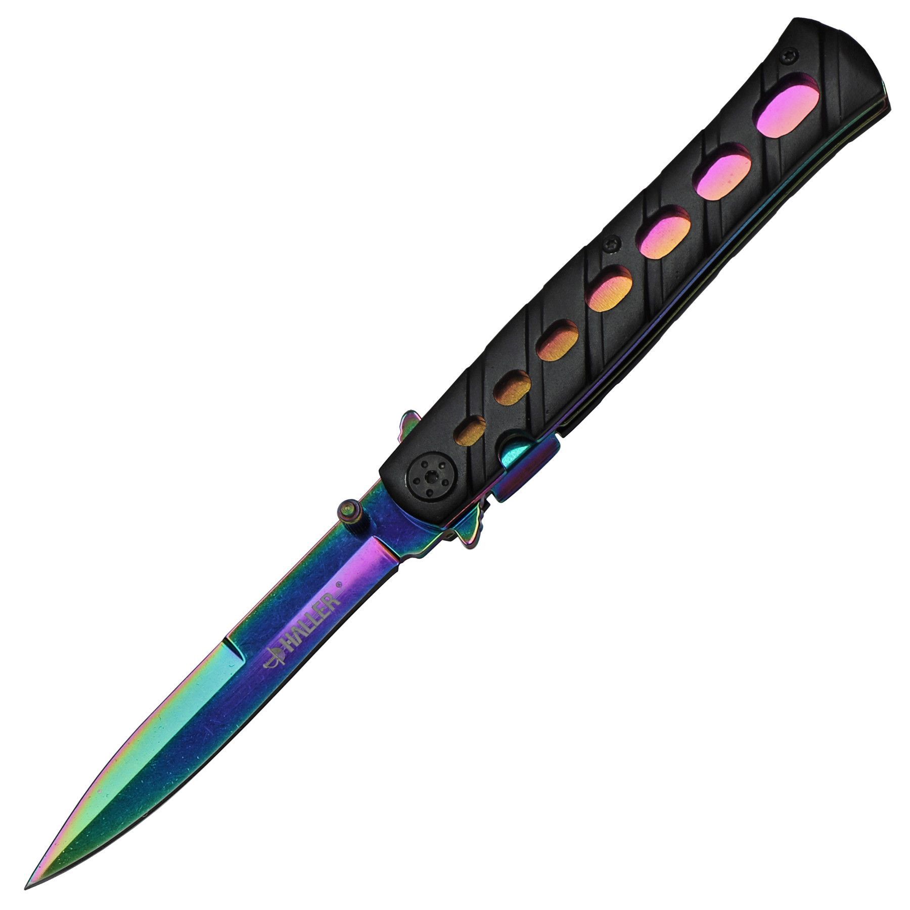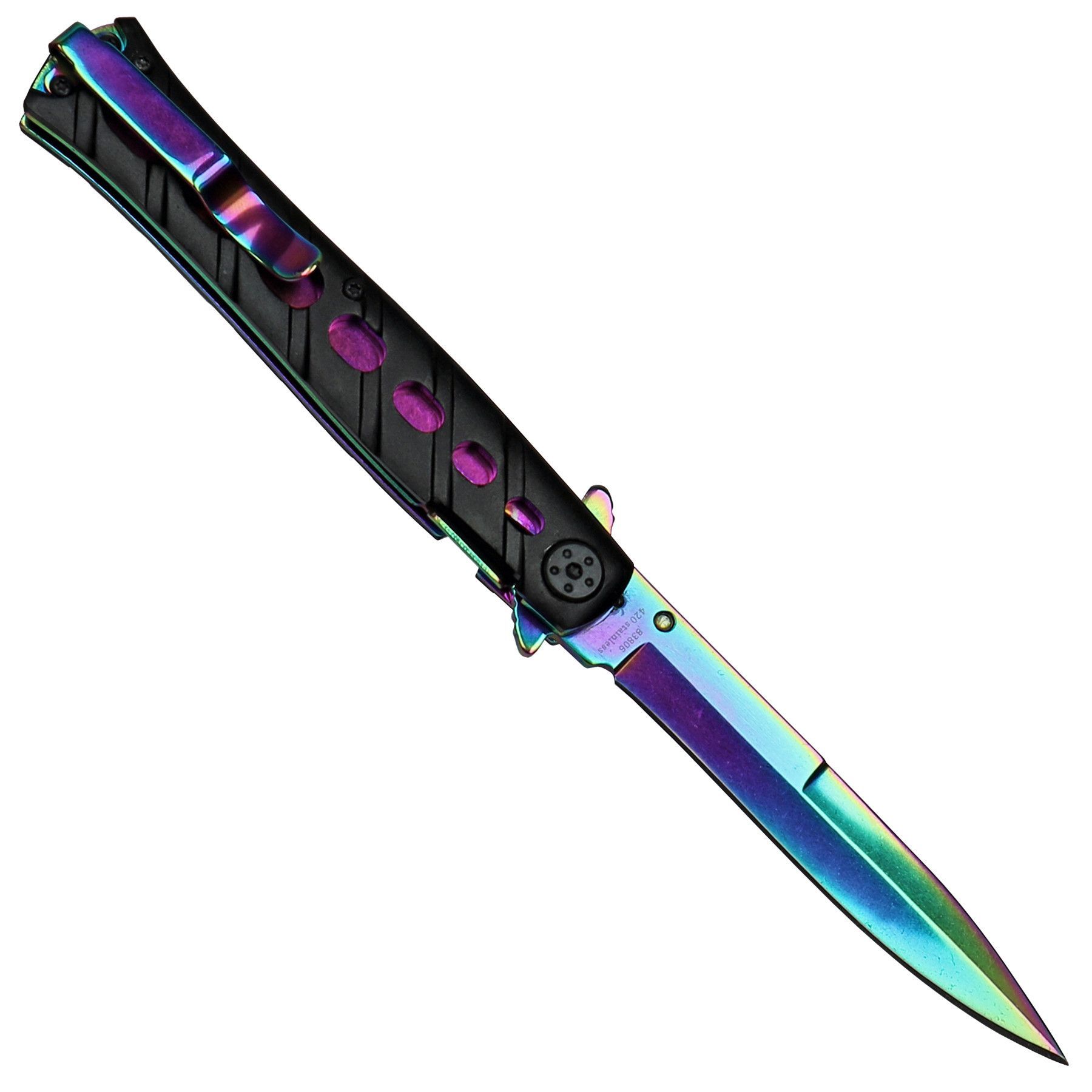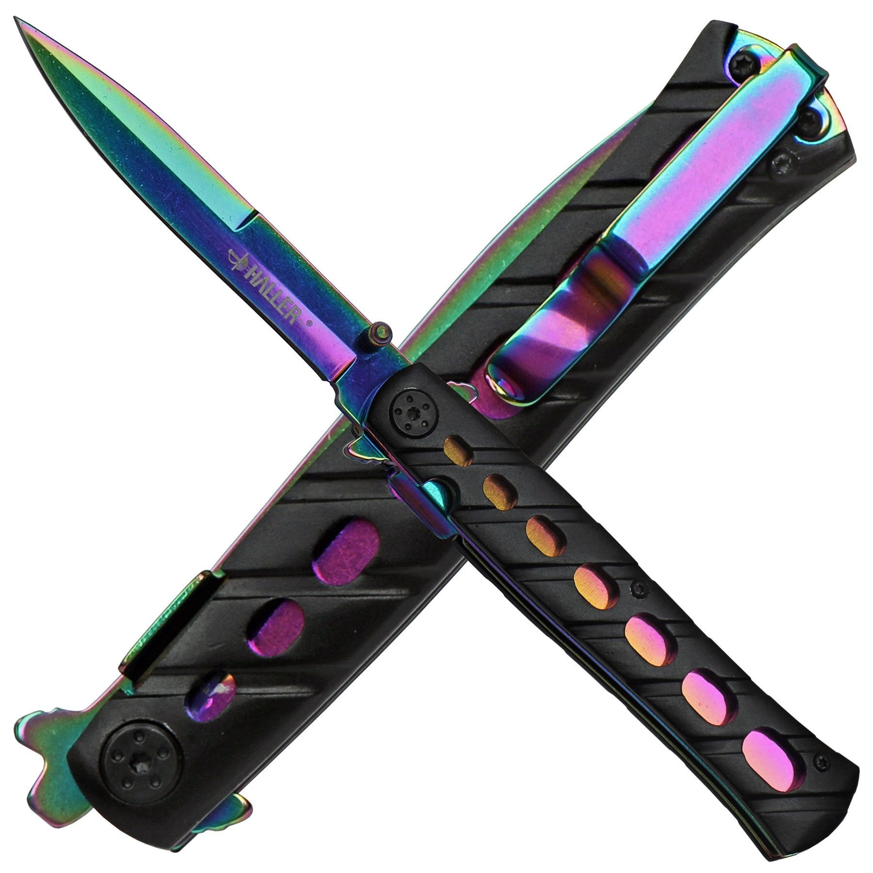 Haller Haller Taschenmesser, Einhandmesser Stiletto Form rainbow black Kunststoffgriff