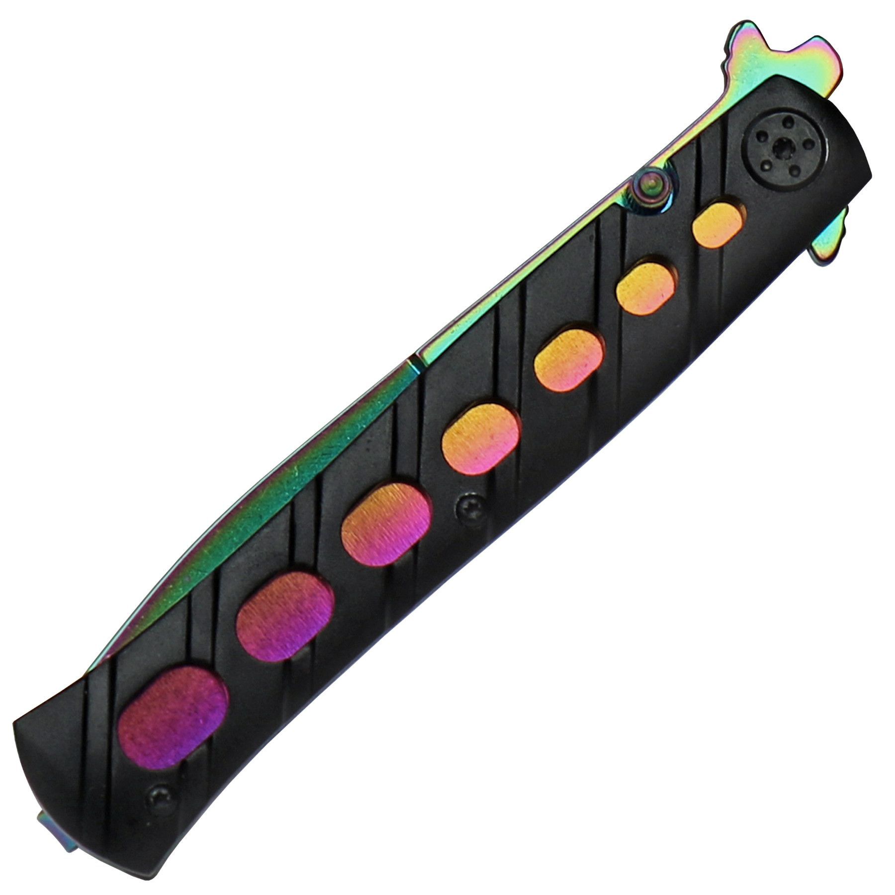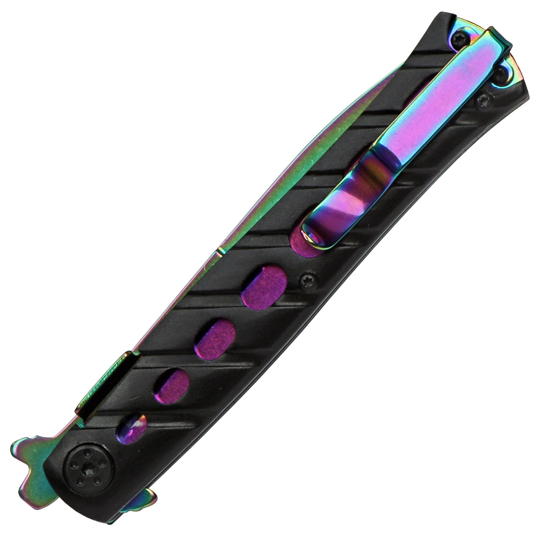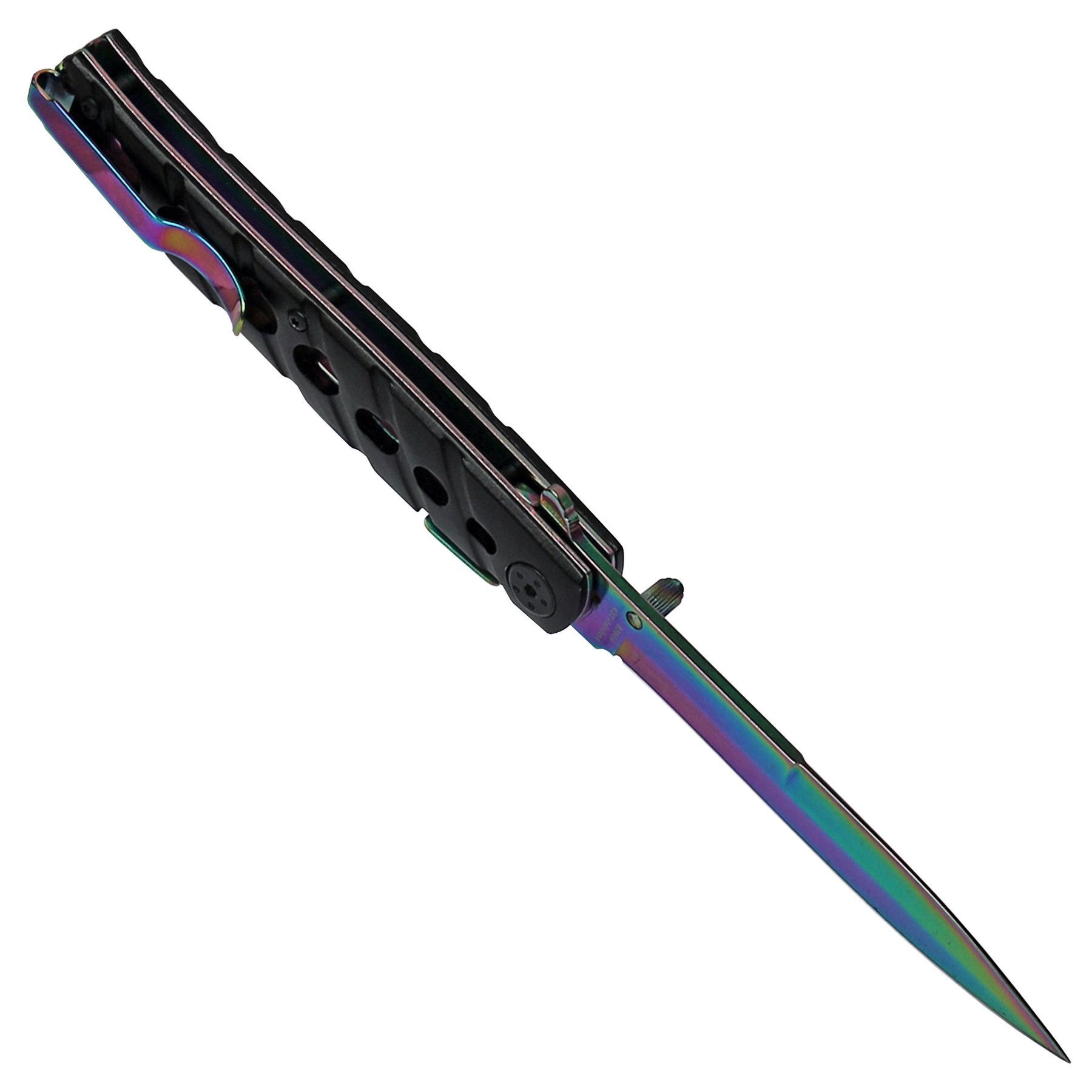 Haller Haller Taschenmesser, Einhandmesser Stiletto Form rainbow black Kunststoffgriff