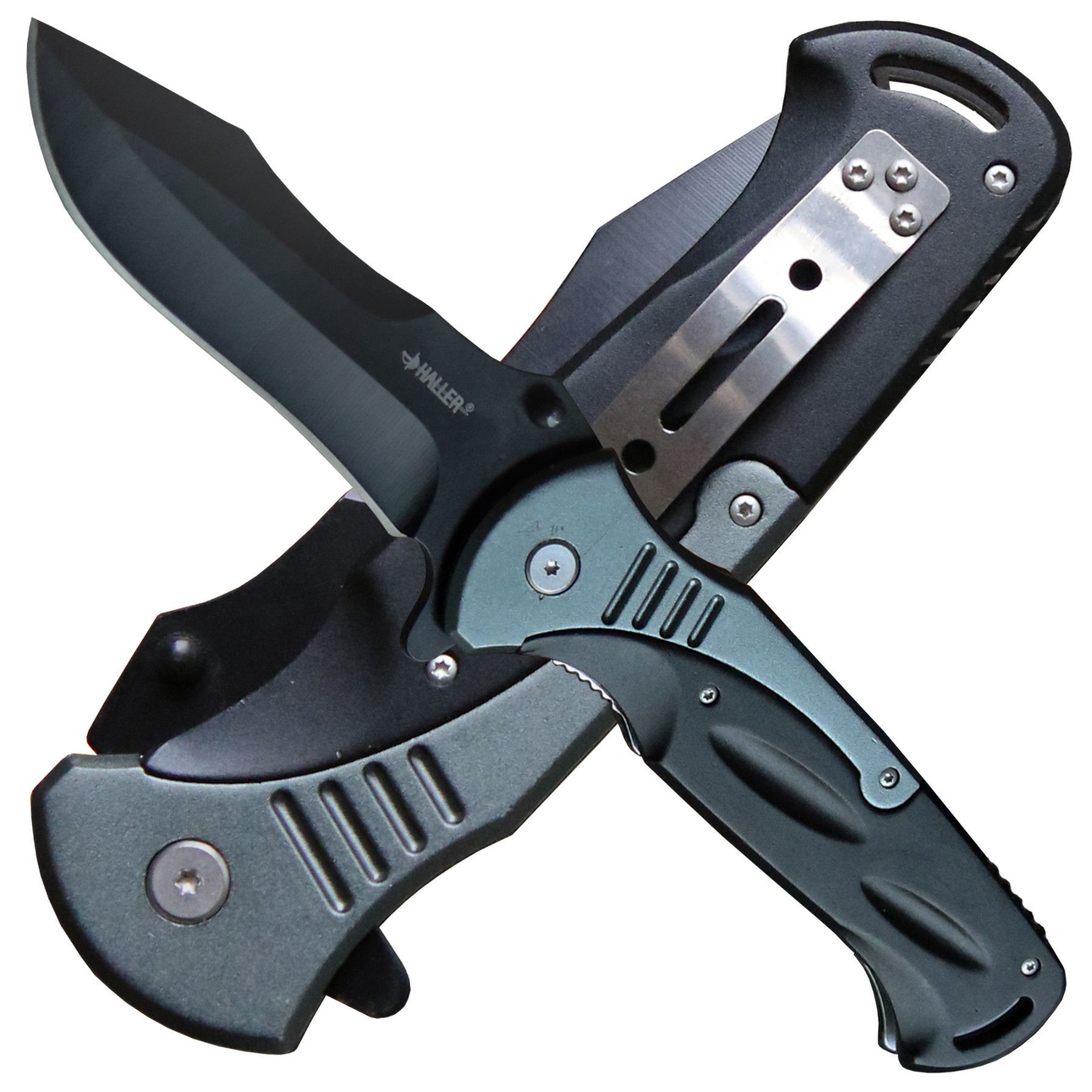 Haller Haller Taschenmesser XXL, Sammlermesser, Leichtmetallgriff, Gürtelclip, Flipper