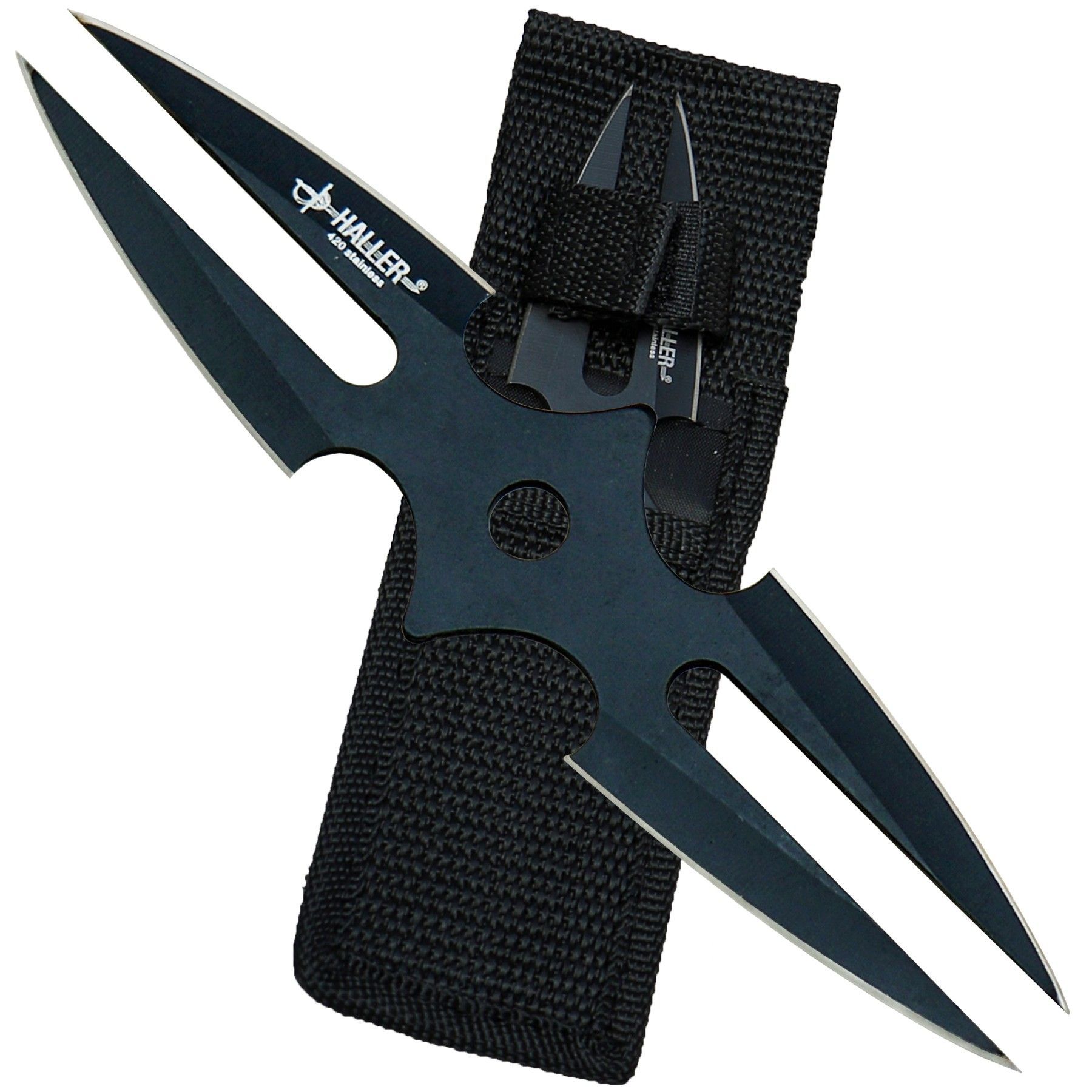 Haller Haller Wurfmesser mit Doppelspitze schwarz beschichtet Nylonscheide (18 + )