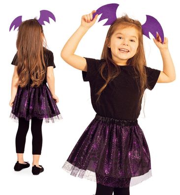 • narrenwelt Fledermaus Set Mädchen Kostümset 2tlg lla Halloween Tutu Tüllrock+Haarreif