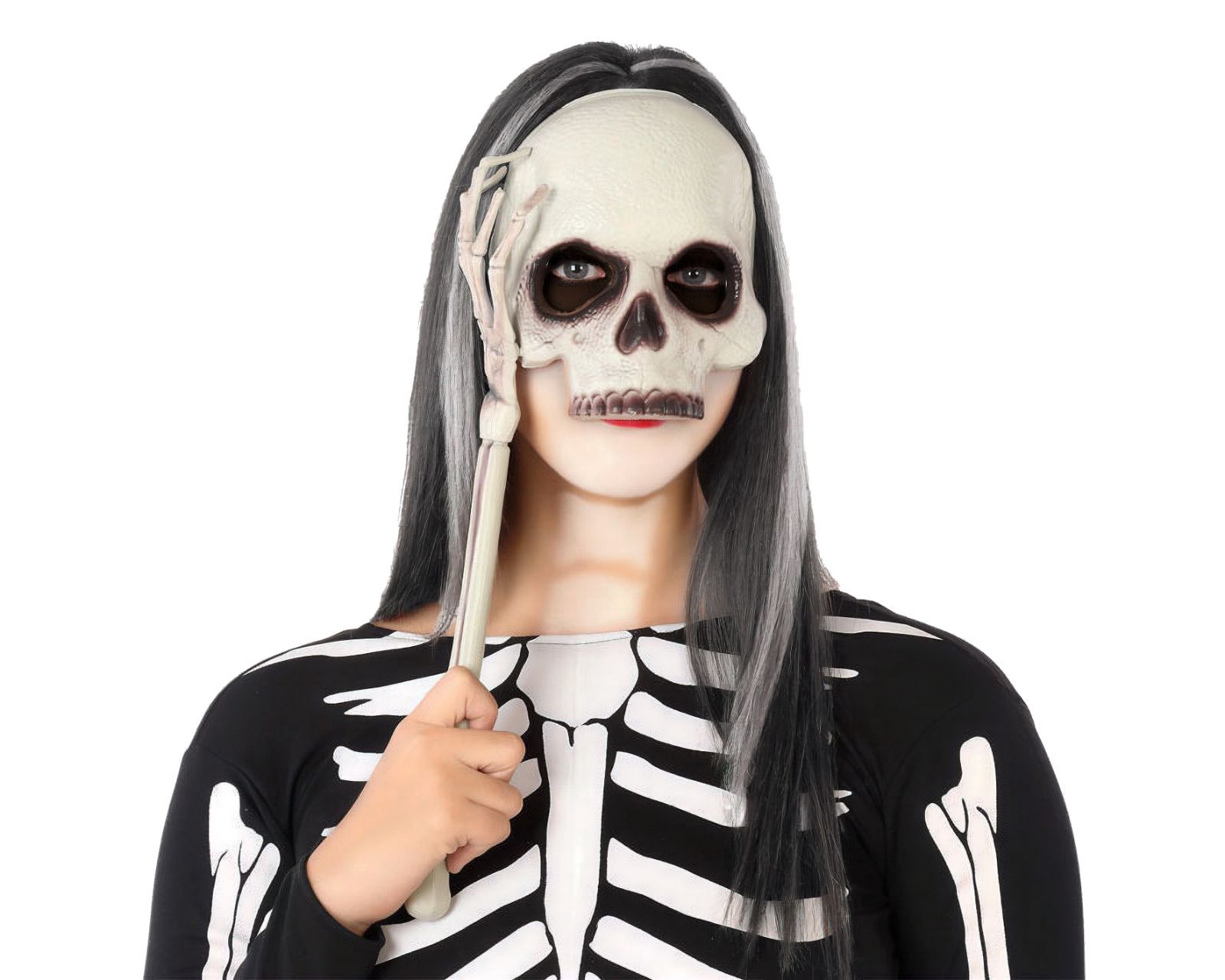 Halloween Maske Totenkopf mit Skeletthand Halbmaske