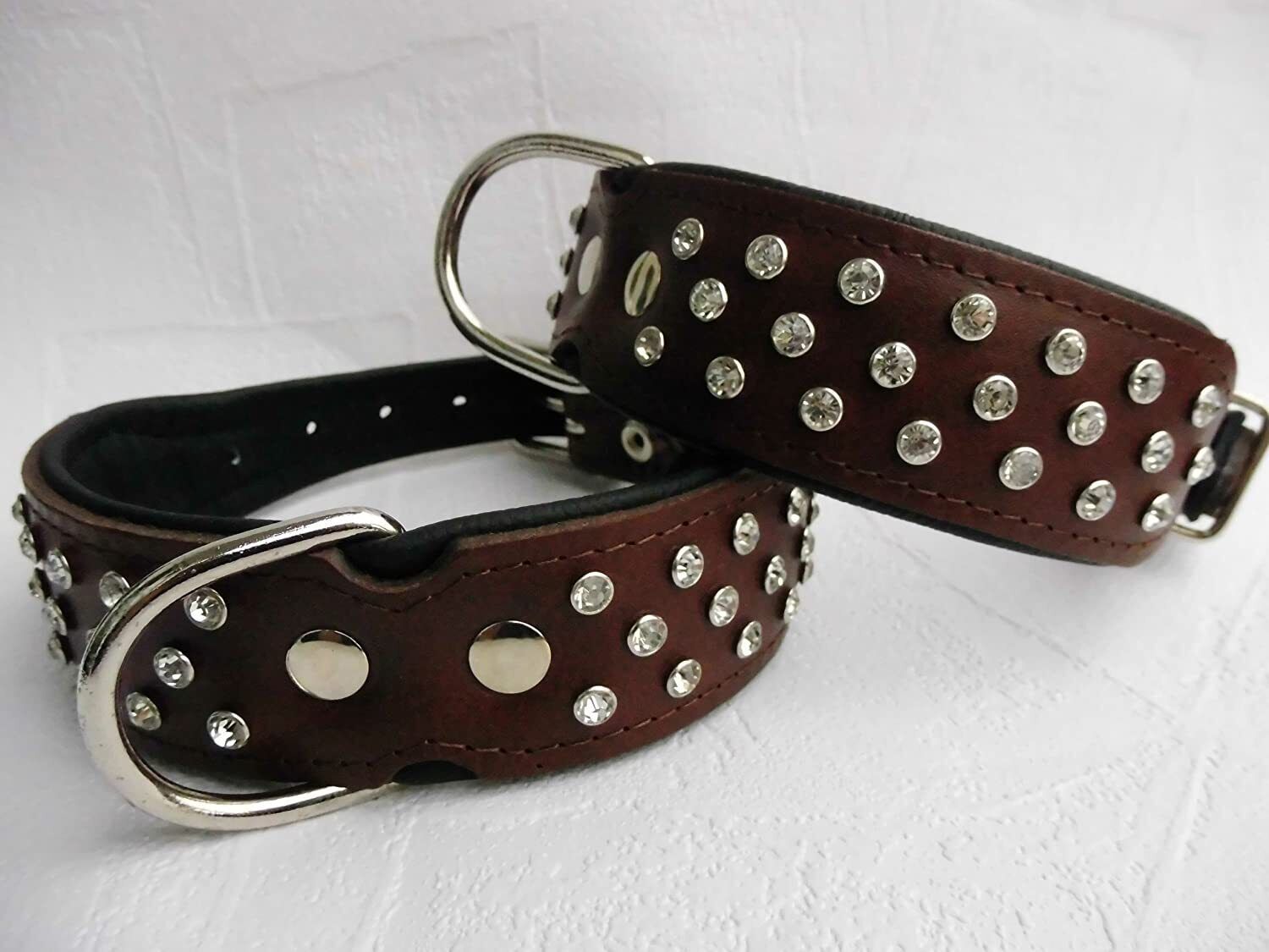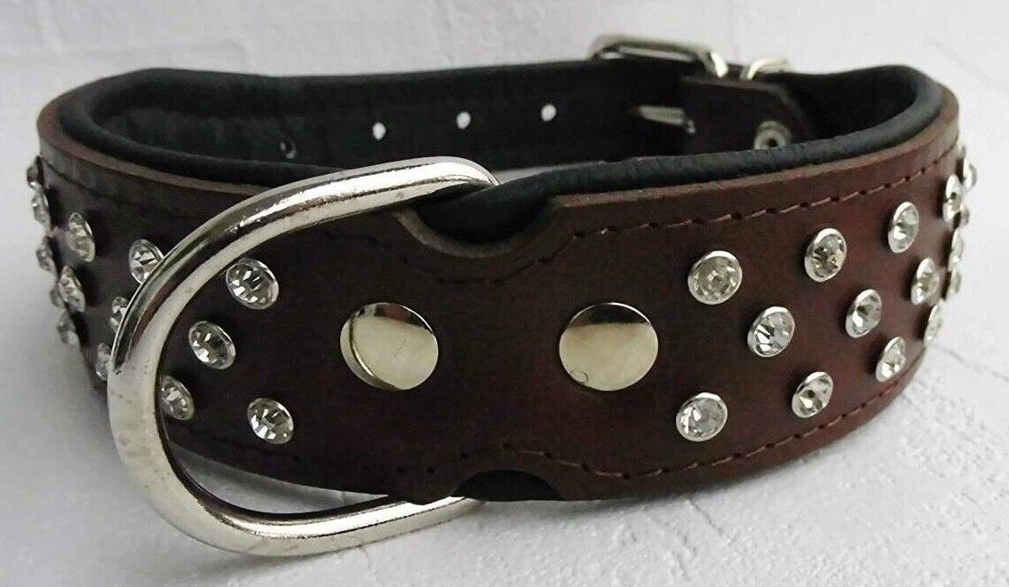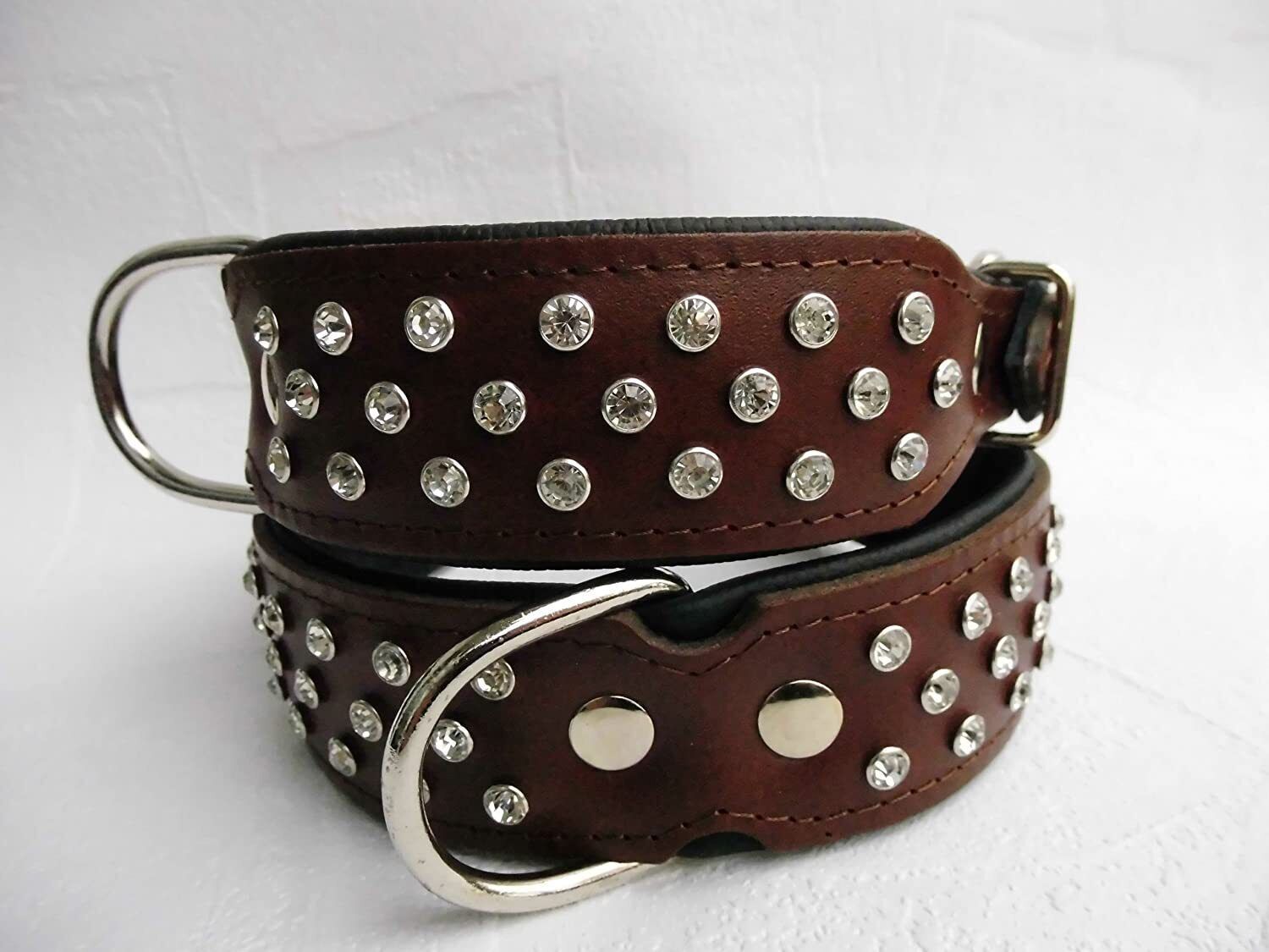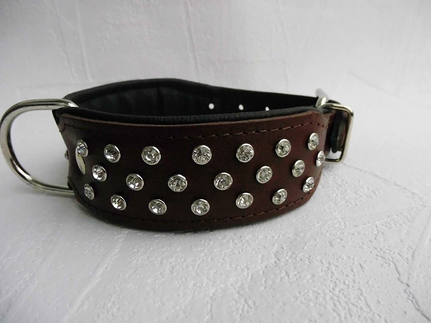 Halsband - Halsumfang 33-42cm/40mm, LEDER + Kristallen, BRAUN Neu (13-23)