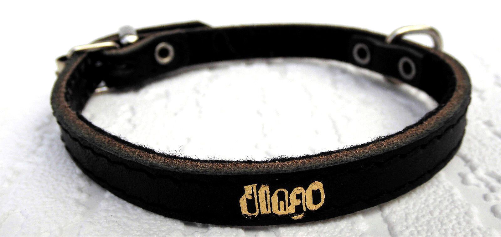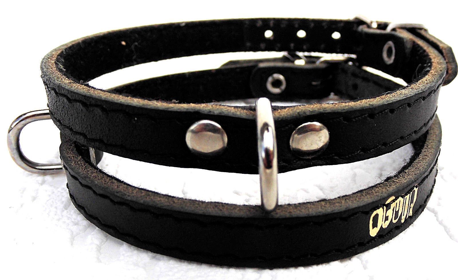 Lederhalsband ***Schwarz*** Maße: Gesamtlänge : 28 cm Halsumfang : 21 - 25 cm Breit : 10 mm Messen Sie hierzu bitte den Hals ihres Hundes. Material : - 100 % hochwertiges Leder, sehr robust - vernäht und gepolstert mit weichem Futterstoff (Filz) Bitte beachten Sie auch andere Angebote!
