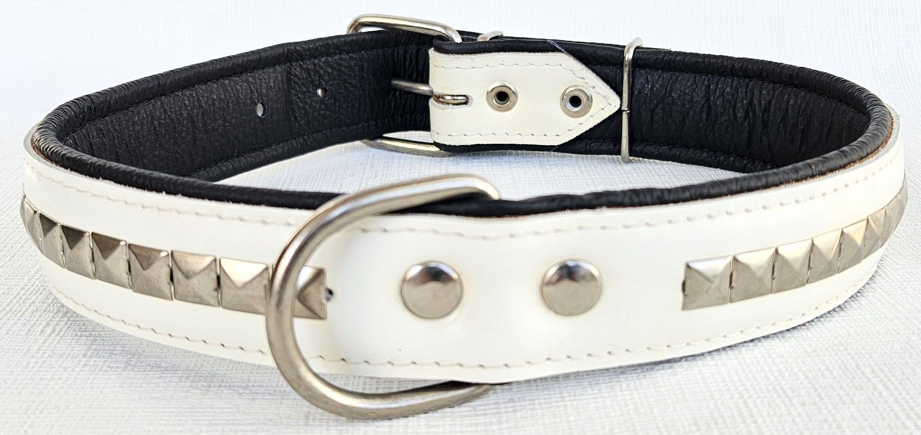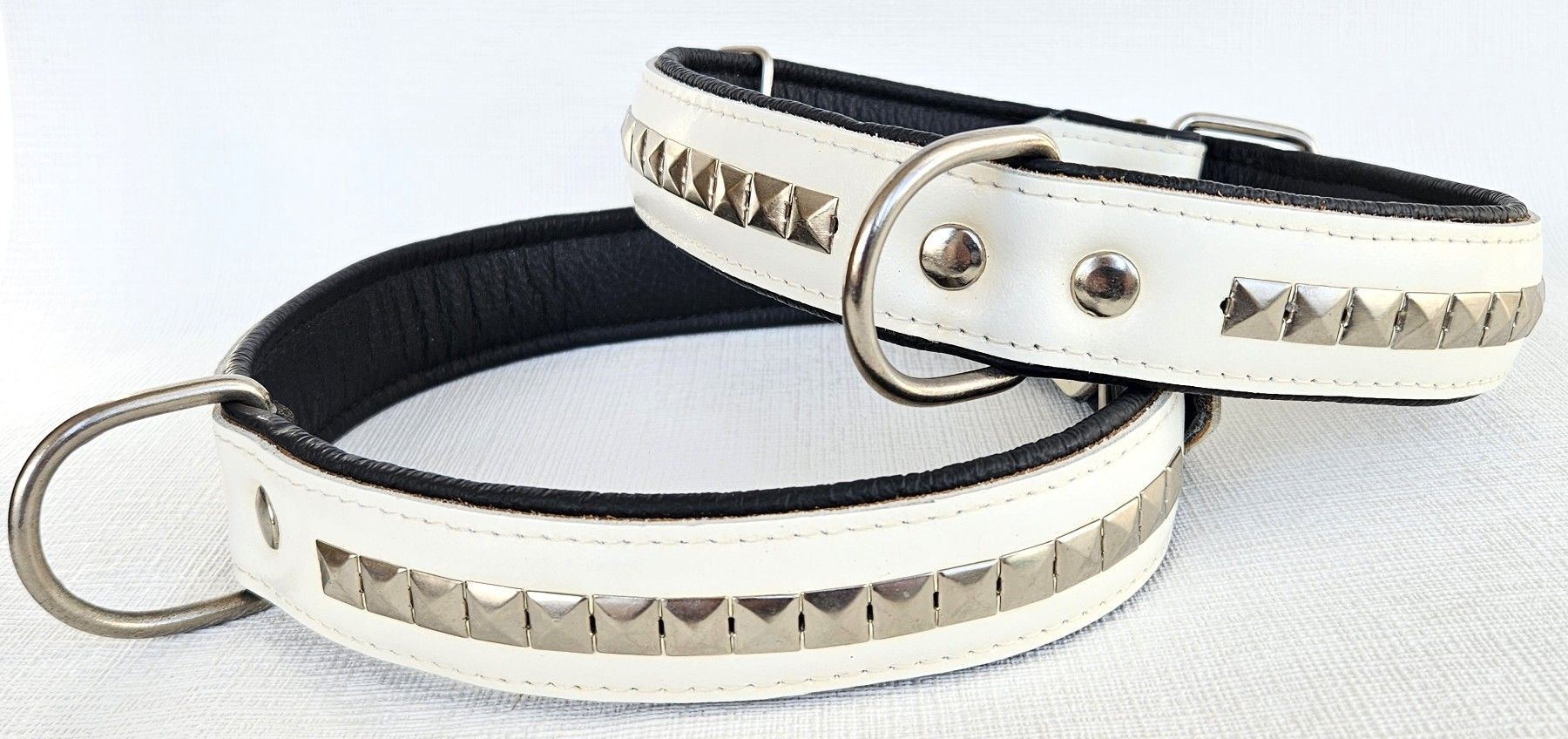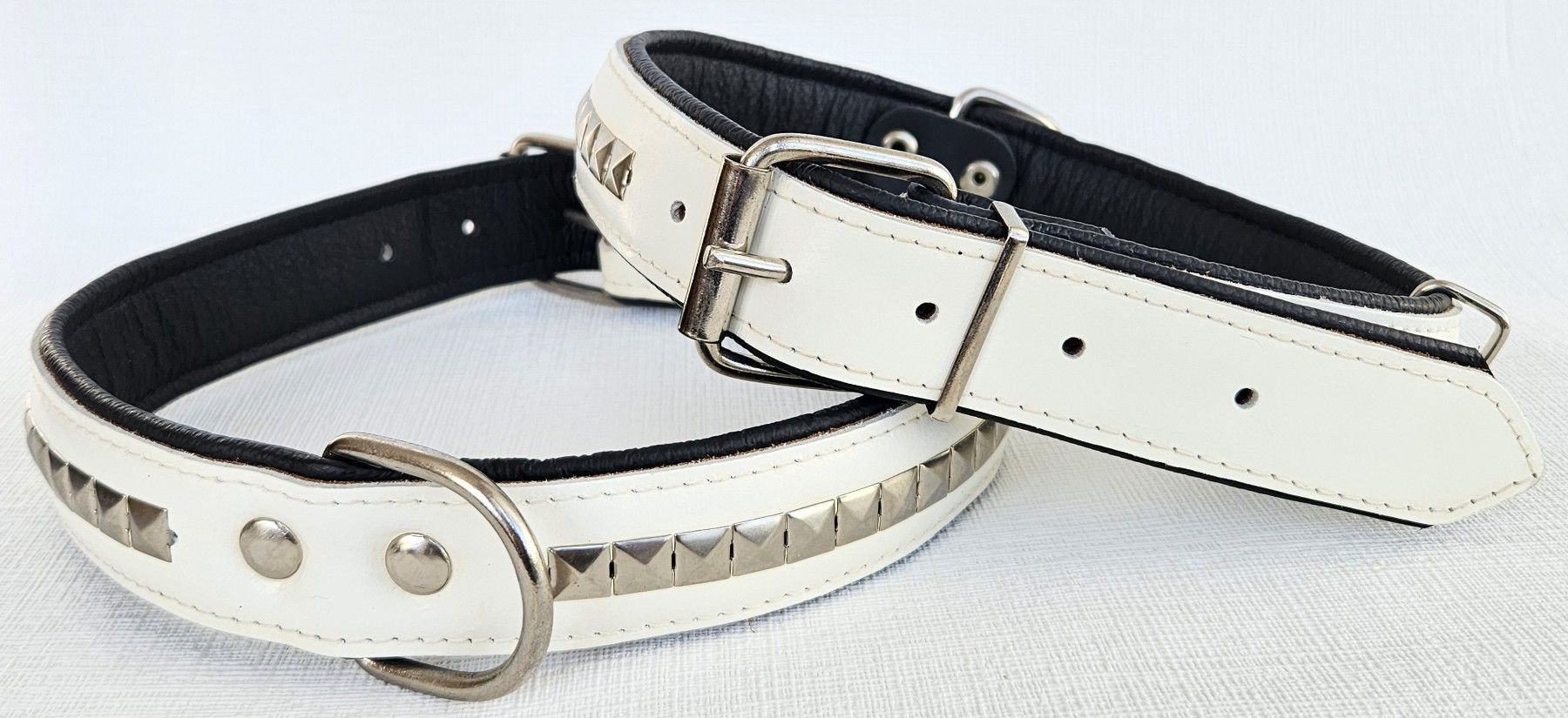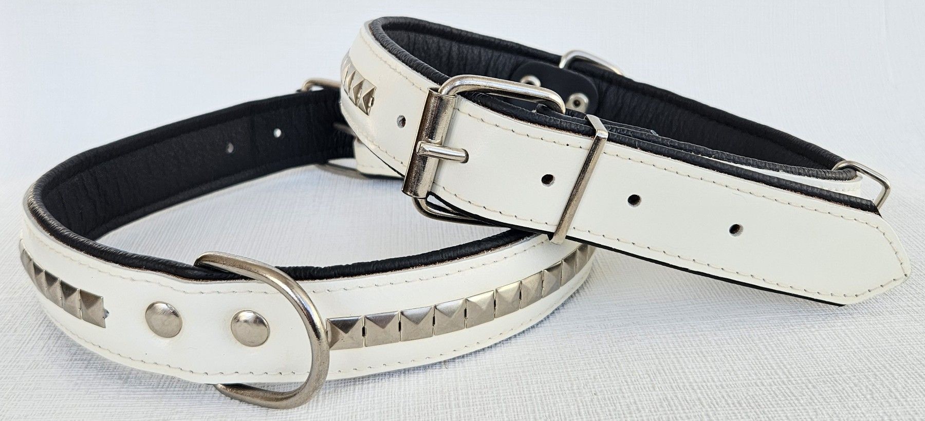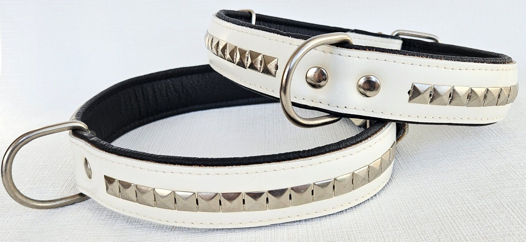 Halsband , Hundehalsband, Halsumfang 48-59cm, Echt LEDER + Weiss