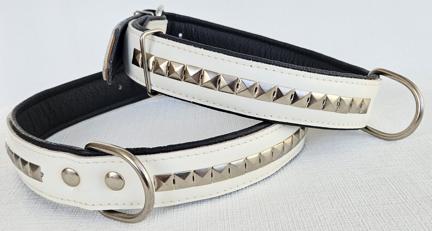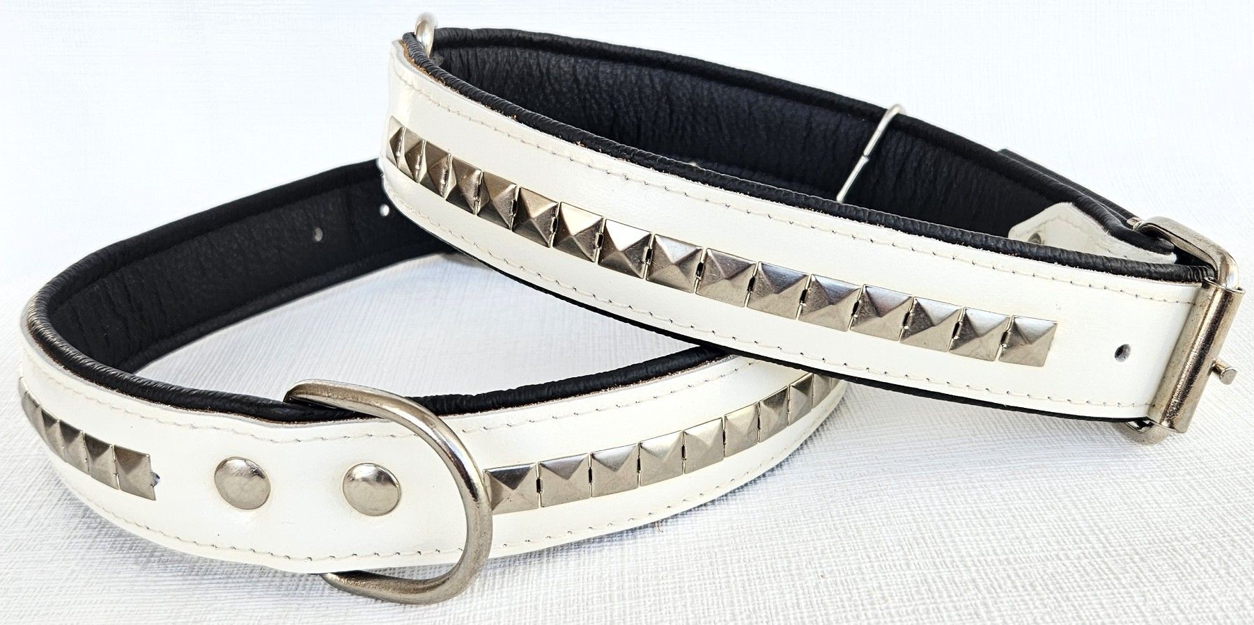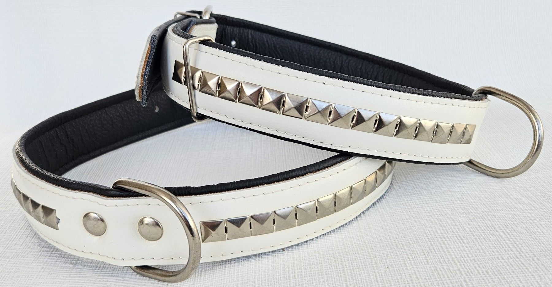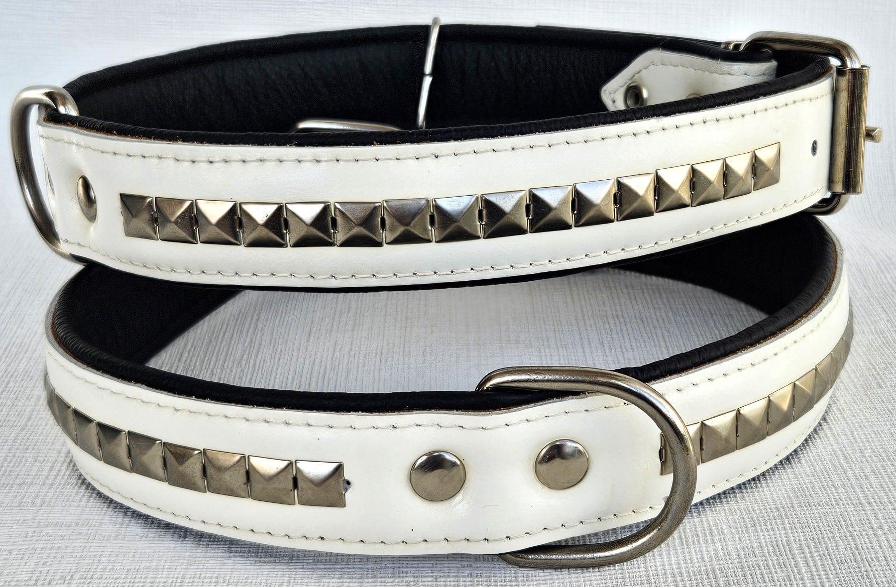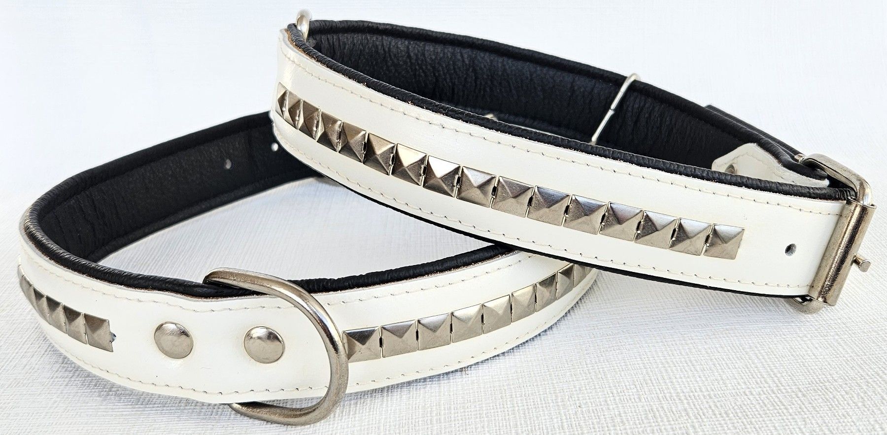 Halsband , Hundehalsband, Halsumfang 48-59cm, Echt LEDER + Weiss