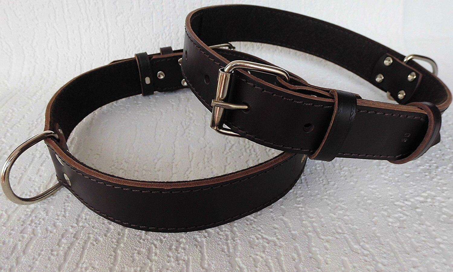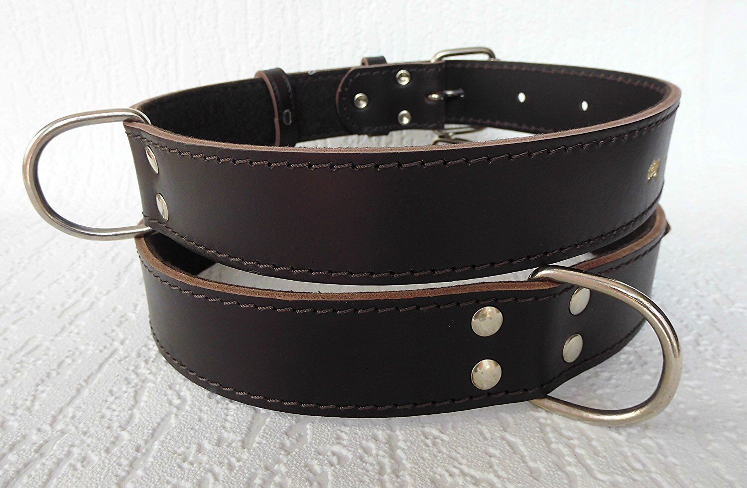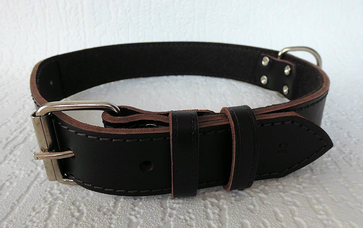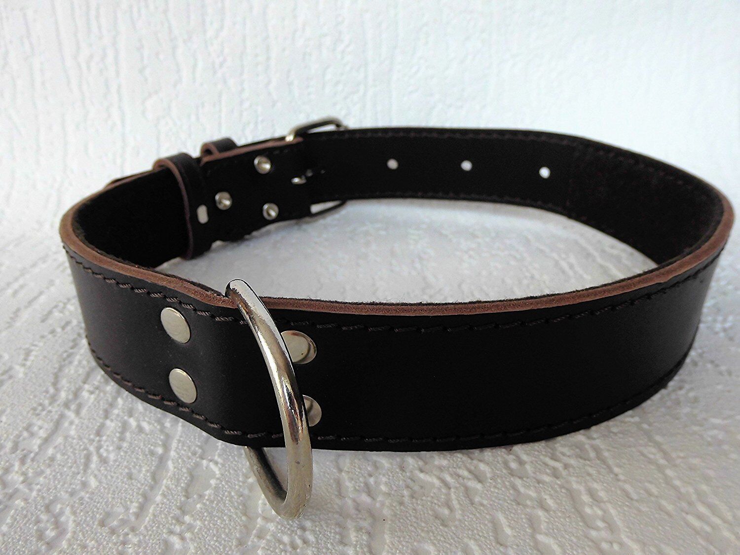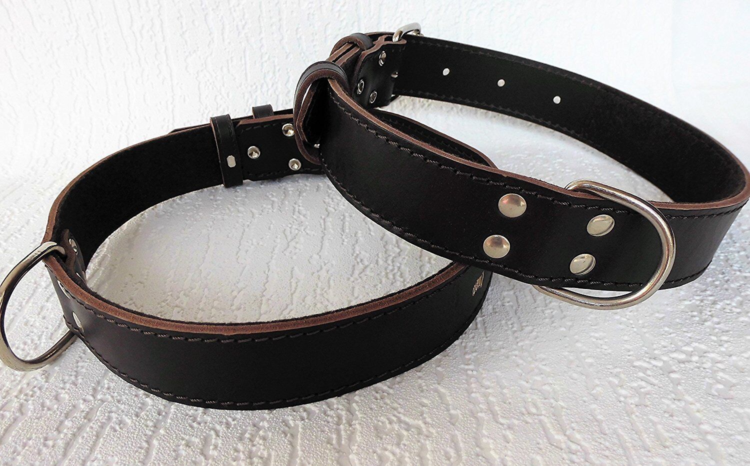 Lederhalsband ***Braun*** Maße: Gesamtlänge : 87 cm Halsumfang : 60 - 75 cm (erste und letzte Loch) Breit : 50 mm Messen Sie hierzu bitte den Hals ihres Hundes. Material : - 100 % hochwertiges Leder, sehr robust - vernäht und gepolstert mit weichem Filz Bitte beachten Sie auch andere Angebote!