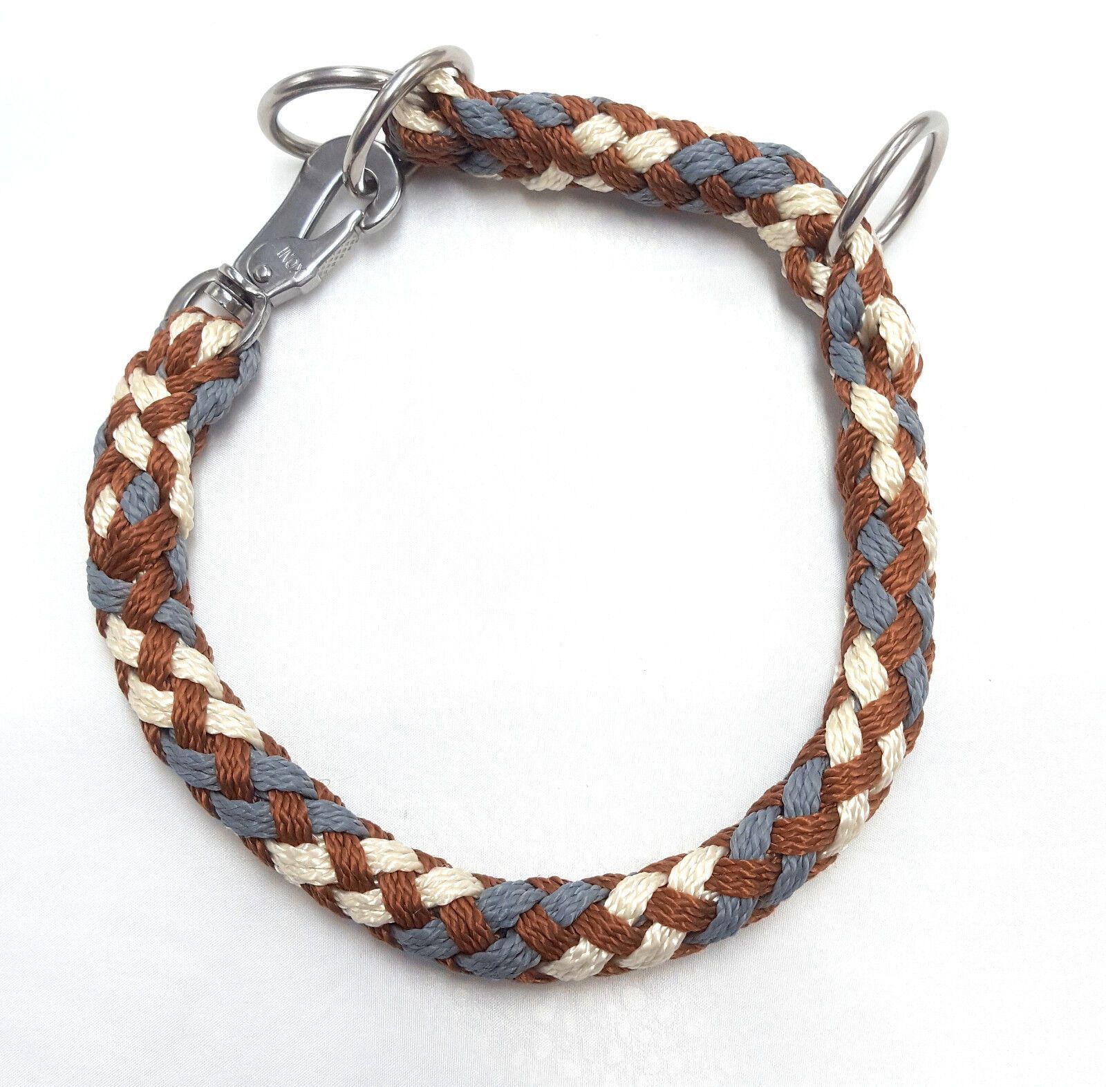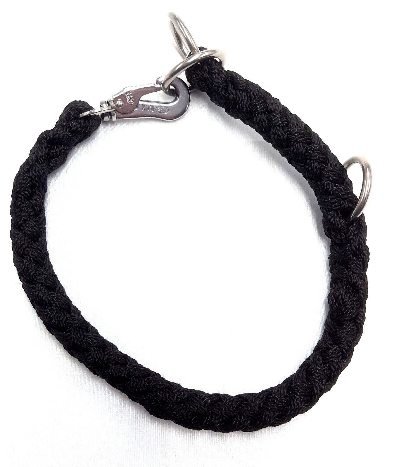 Halsband rund geflochten mit Stop und Sprengerhaken Edelstahl Tauwerk