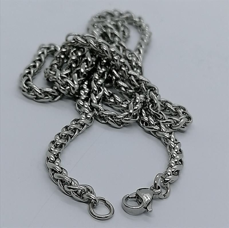 Edelstahl Halskette Weizenkette mit Karabinerverschluss. Länge: 60 cm, Stärke: 3 mm