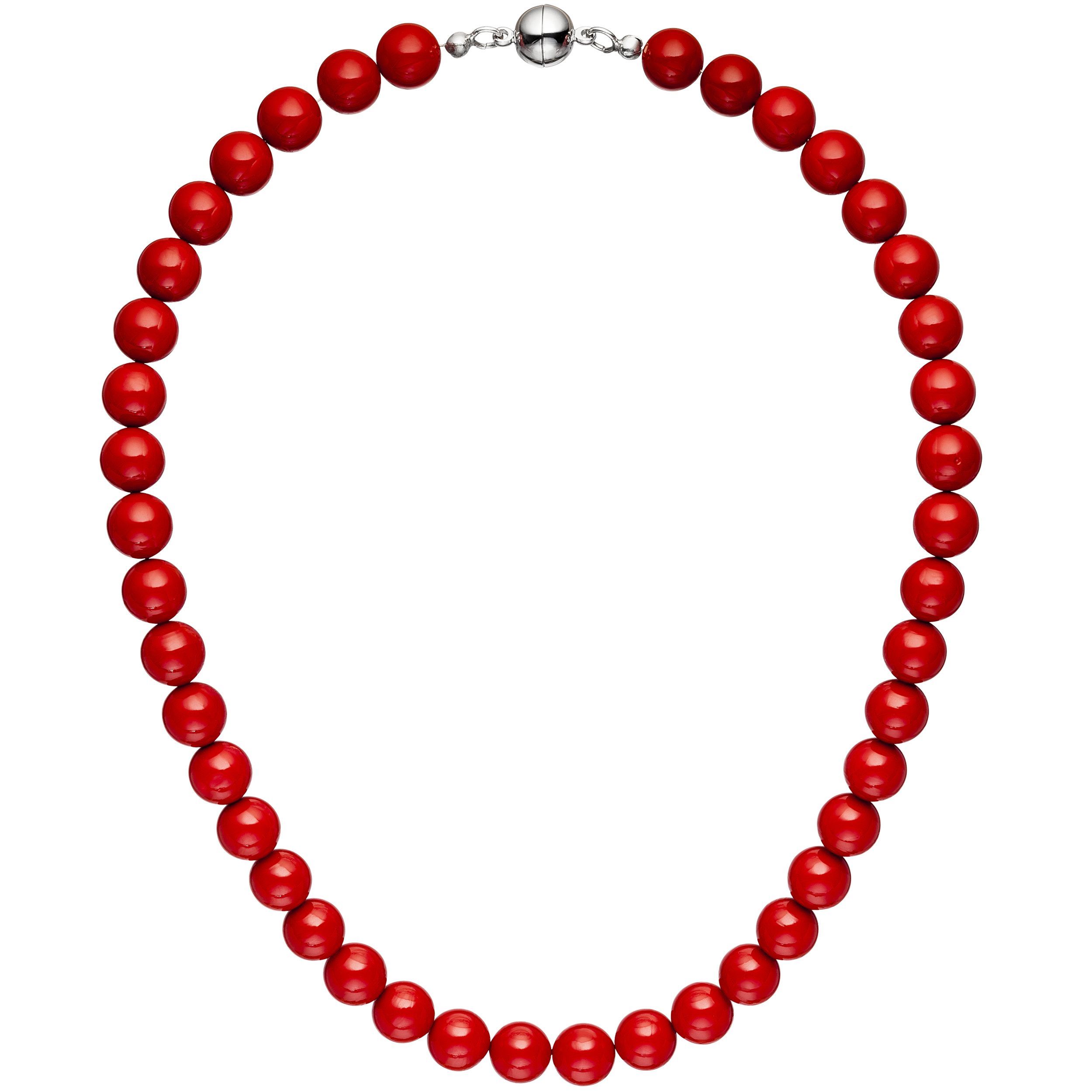 Kette mit roten farbveredelten Muschelkernperlen und Magnet-Schließe aus Metall, Durchmesser der Perlen ca. 10 mm, Länge ca. 45 cm, Gewicht ca. 69,7 g * Bitte beachten Sie die Maße! Auf dem Foto kann der Artikel größer wirken *