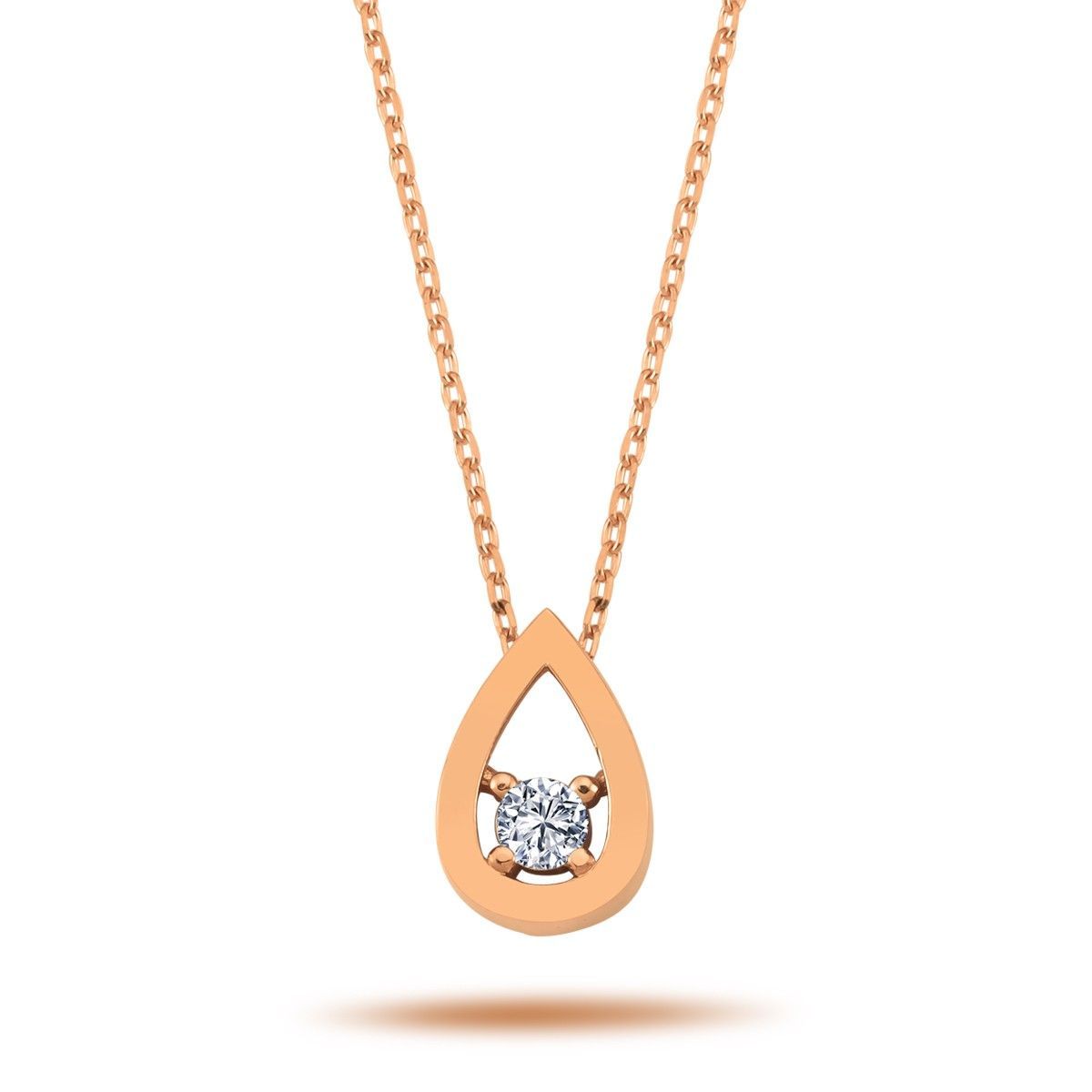 Halskette mit Anhänger Großer Tropfen und Solitär Brilliant 14 Karat Rotgold Rosegold