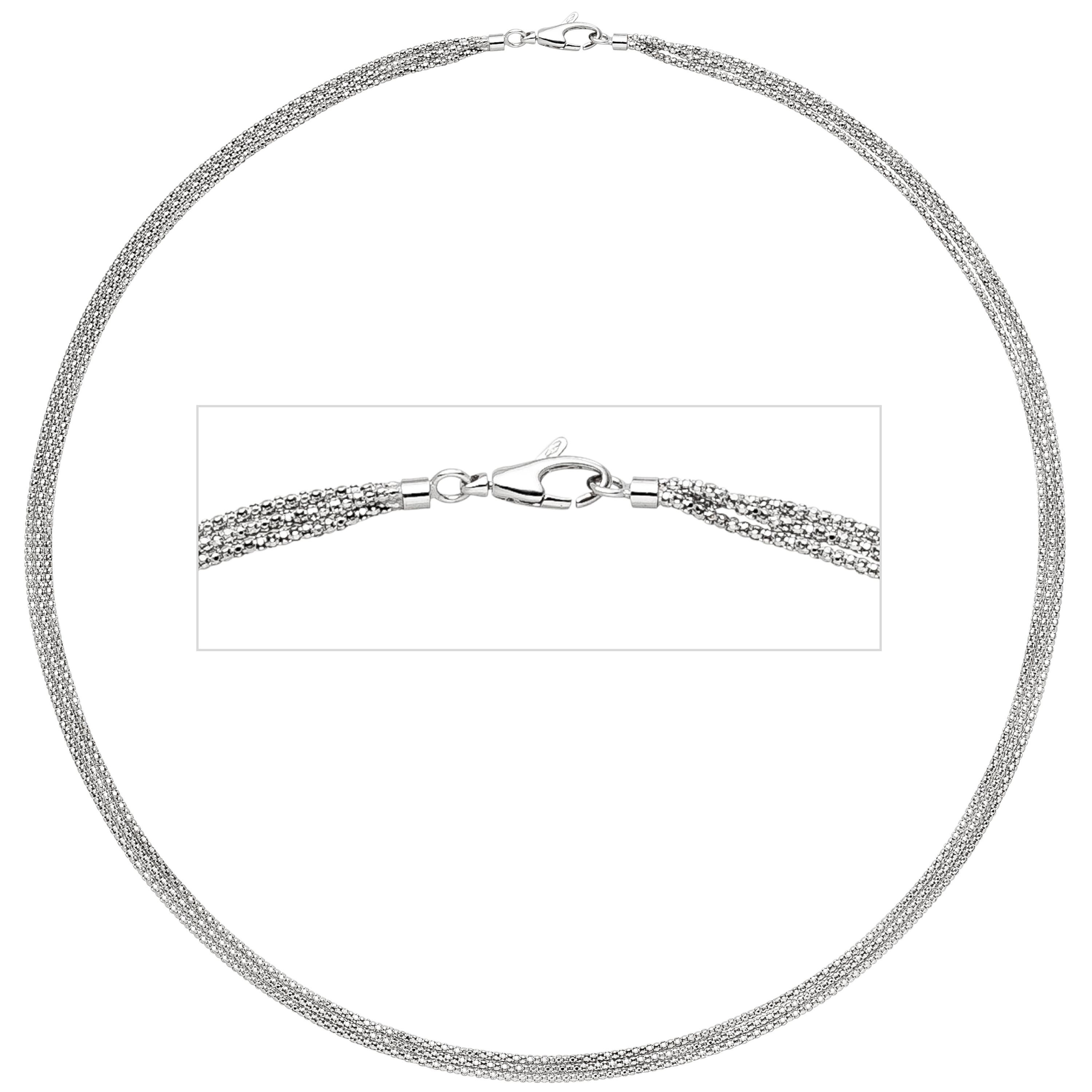 JOBO Halskette Popcorn Kette 3-reihig 750 Gold Weißgold 45 cm Goldkette Karabiner
