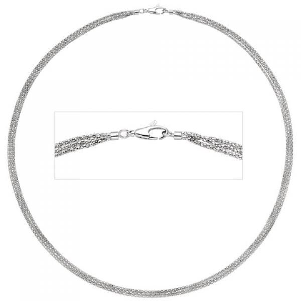 JOBO Halskette Popcorn Kette 3-reihig 750 Gold Weißgold 45 cm Karabiner
