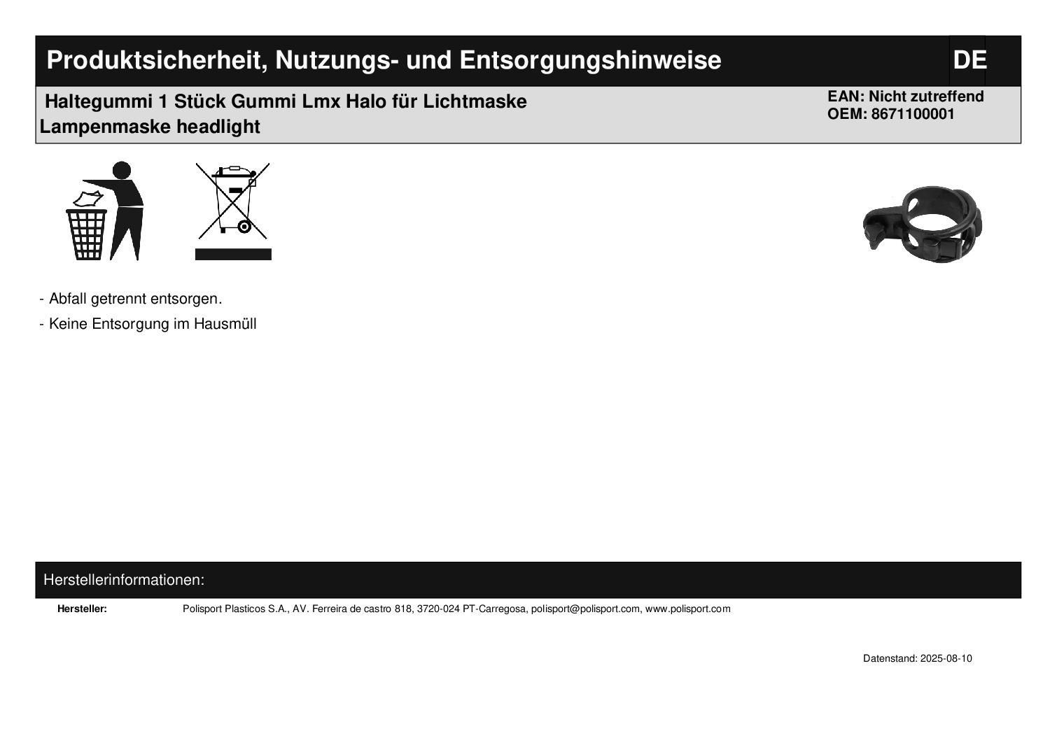 Polisport Haltegummi 1 Stück Gummi Lmx Halo für Lichtmaske Lampenmaske headlight