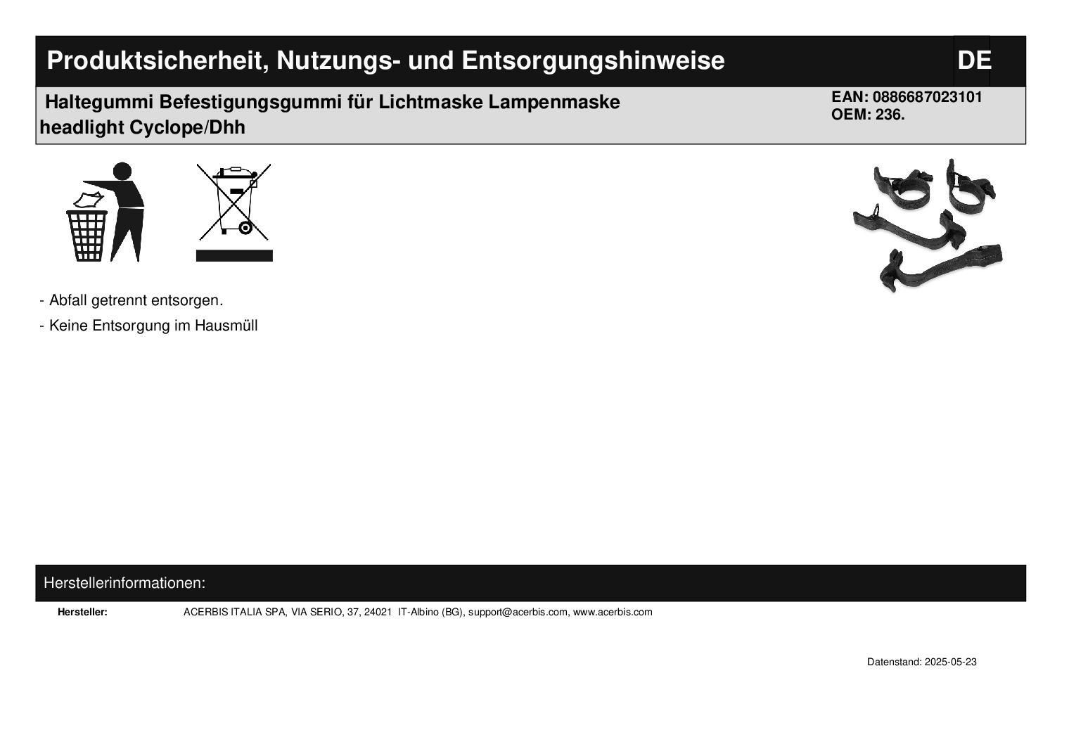 Acerbis Haltegummi Befestigungsgummi für Lichtmaske Lampenmaske headlight Cyclope/Dhh