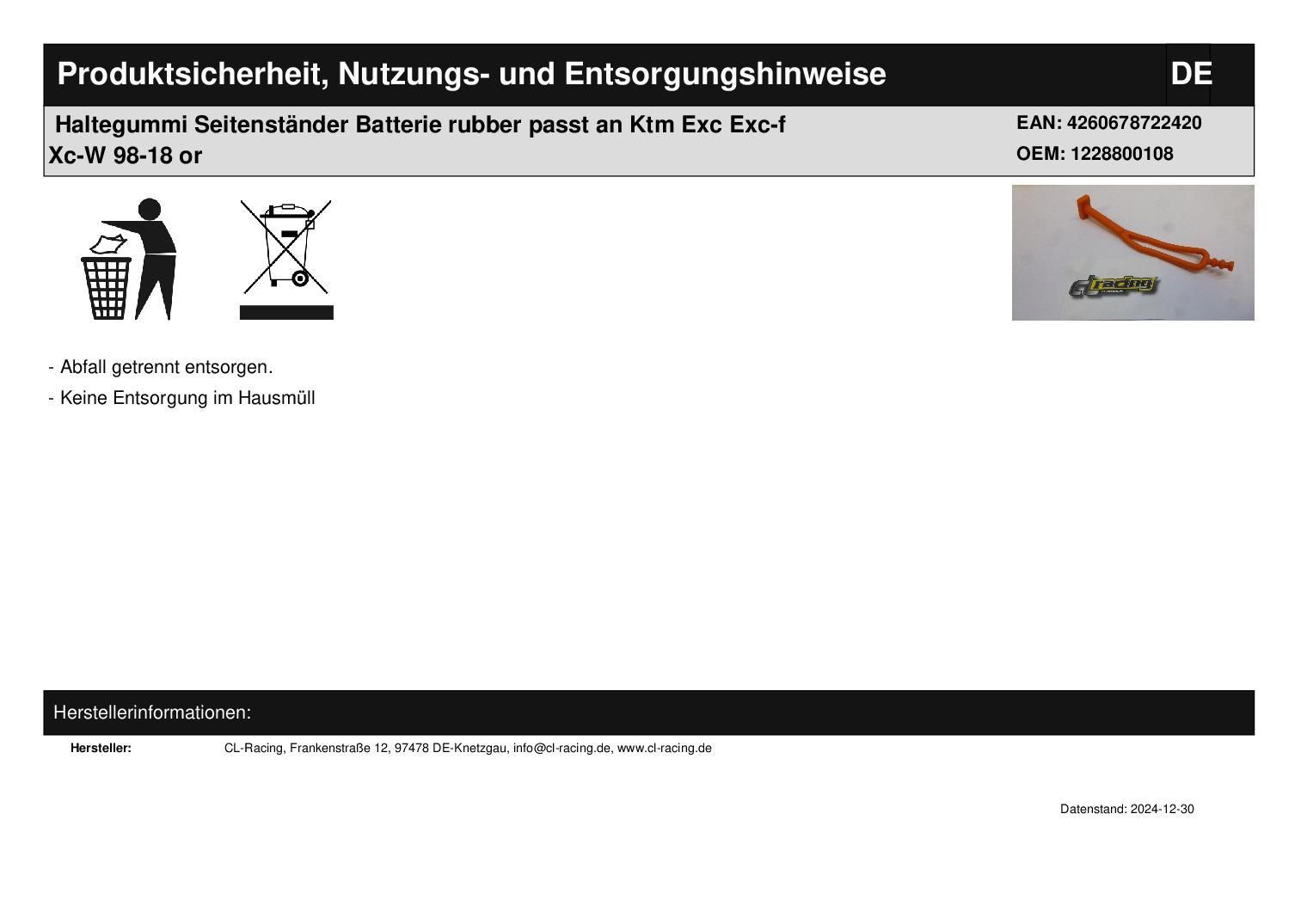 Haltegummi Seitenständer Batterie rubber passt an Ktm Exc Exc-f Xc-W 98-18 or