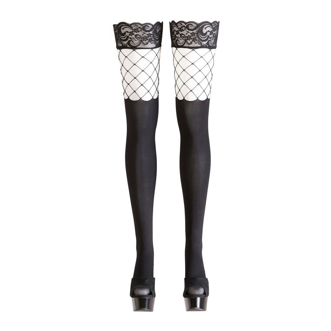 Cottelli Collection Halterlose Strümpfe S M L Blickdicht Netz Damen Nylons stockings "Virgin" S10