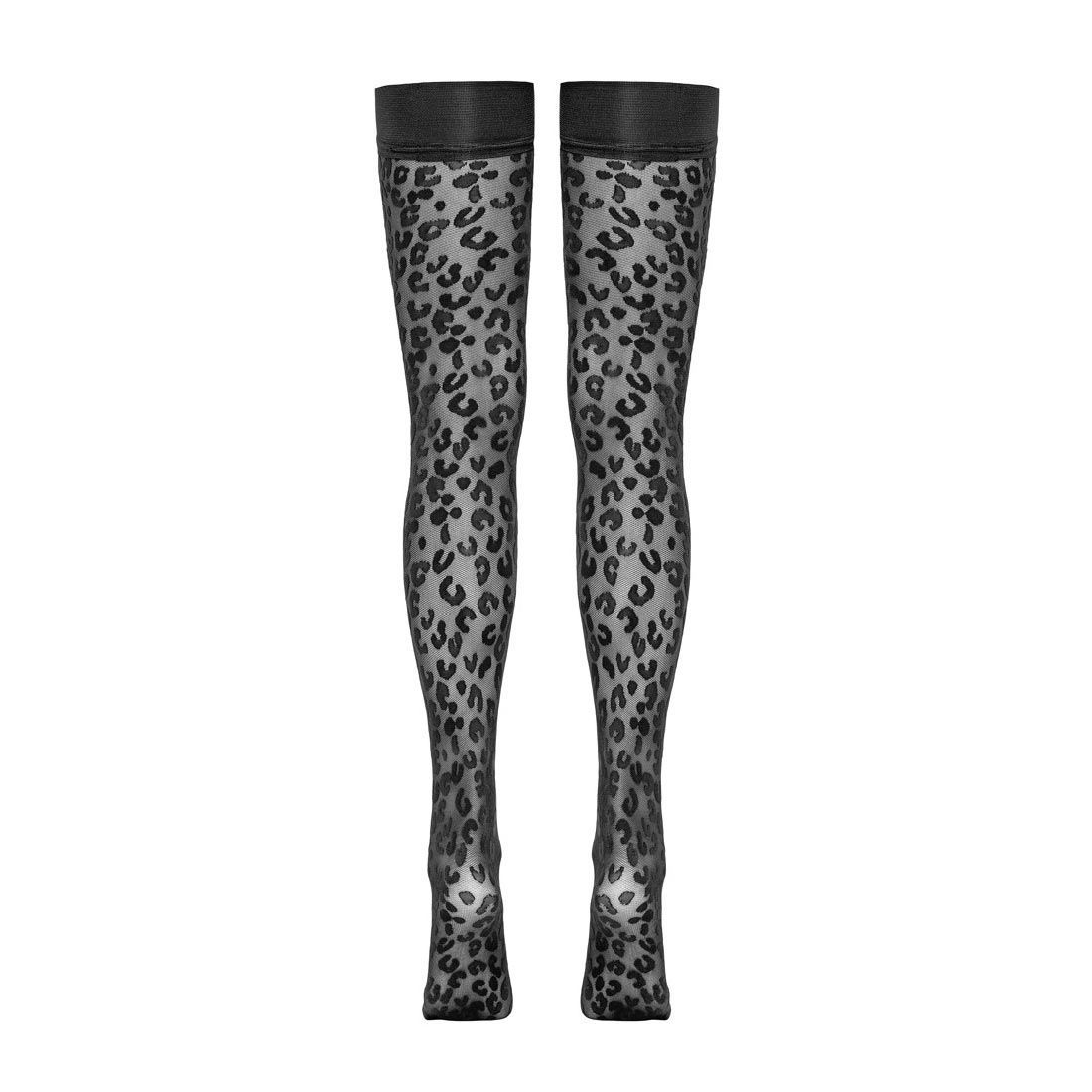 Halterlose Strümpfe S M L XL im Leo-Look mit Silikon-Streifen schwarz "Alish"S34
