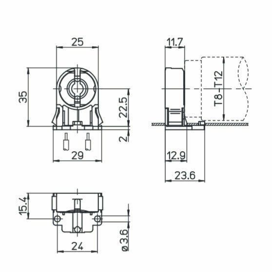 Halterung, Fassung 1 Stück, G13 für T8 d=26mm Leuchtstofftöhre.