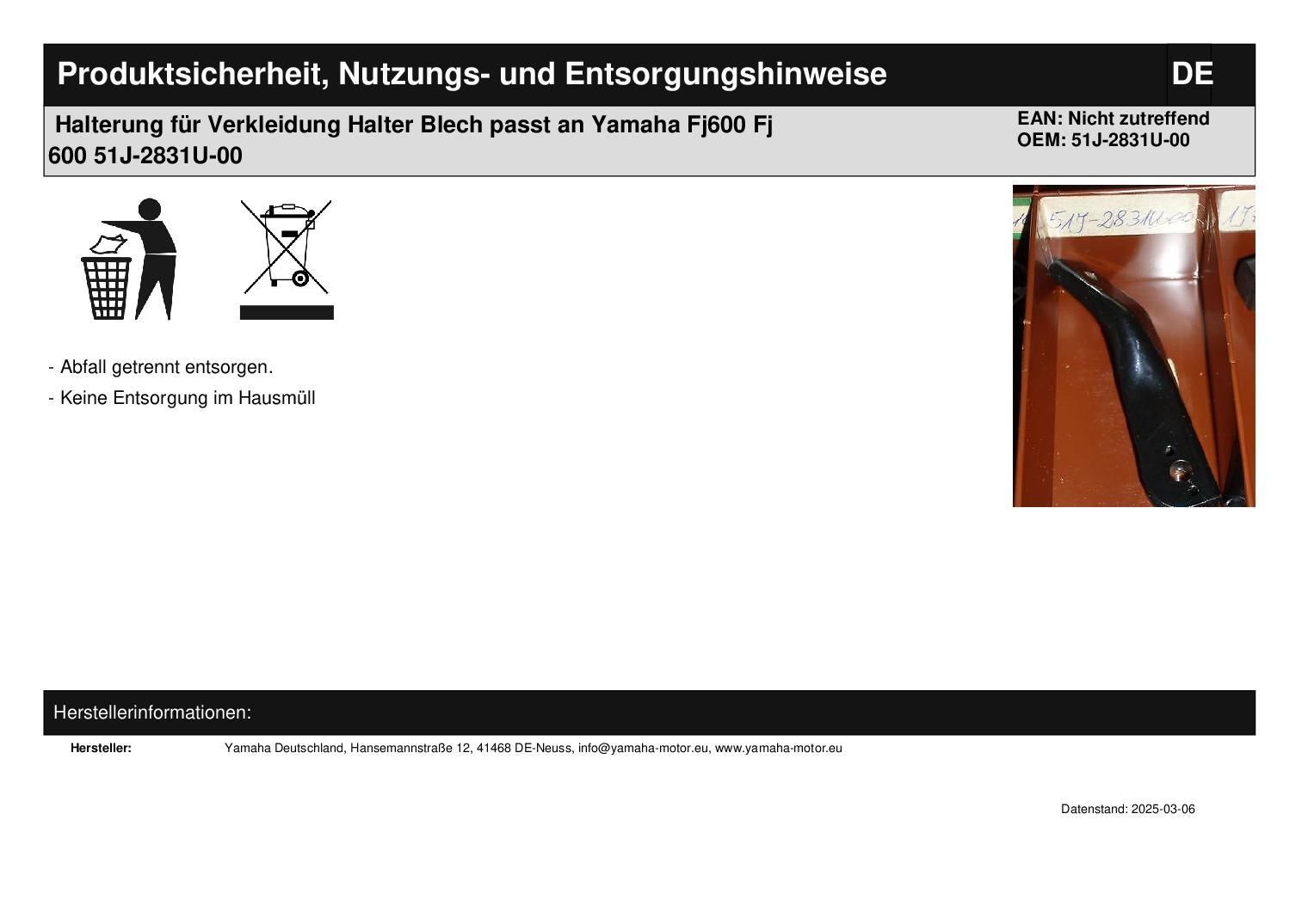 Halterung für Verkleidung Halter Blech passt an Yamaha Fj600 Fj 600 51J-2831U-00 In dieser Auktion gibt es folgenden Artikel zu kaufen: originale Halterung für Verkleidungsteil (siehe Foto) Modell: passend für Yamaha 1984 FJ600L FAIRING 1984 FJ600LC FAIRING 1985 FJ600N FAIRING 1985 FJ600NC (CA ED.)