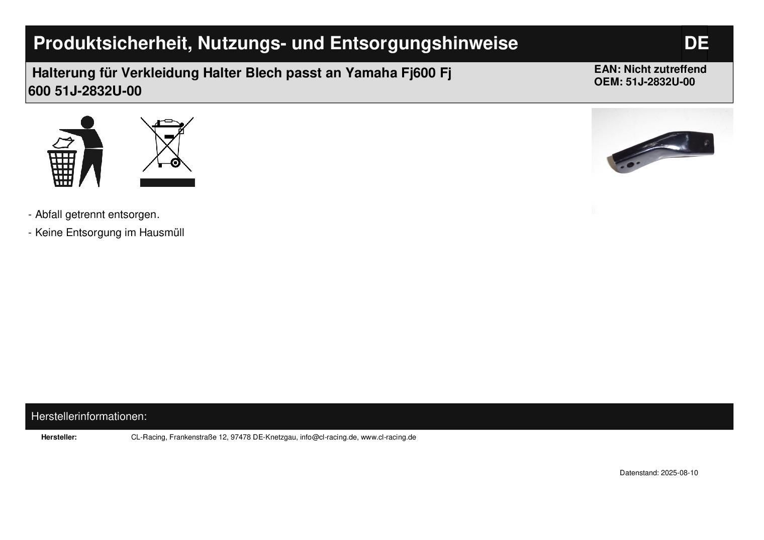 Halterung für Verkleidung Halter Blech passt an Yamaha Fj600 Fj 600 51J-2832U-00