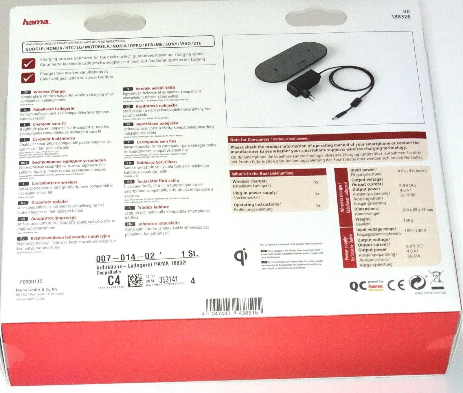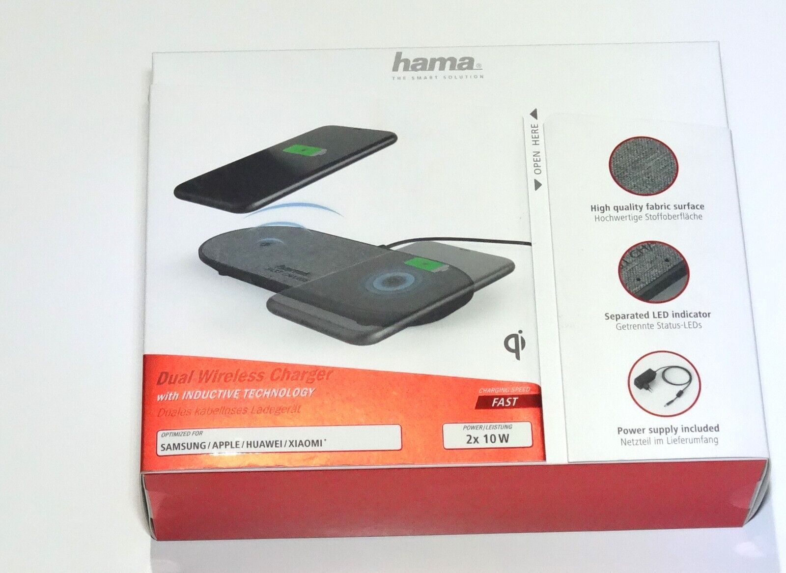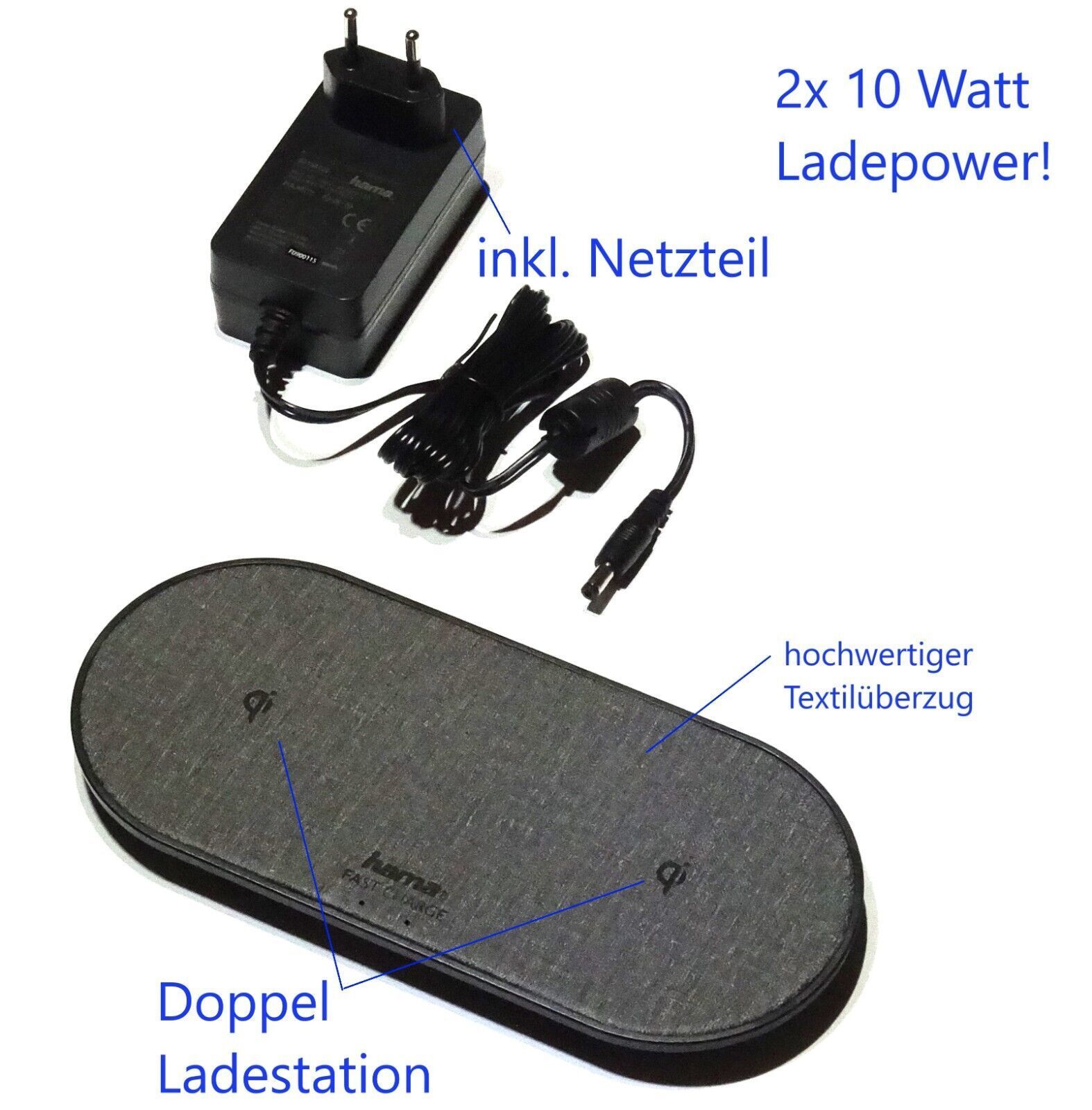 Lieferumfang: 1x Hama 2x10W Smartphone Handy Induktion Doppel Ladestation Textilüberzug dunkelgrau