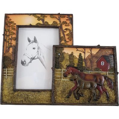 Bilderrahmen Western Lederoptik mit Pferden 23cm (Gr. 23x18,3x2,5cm)
