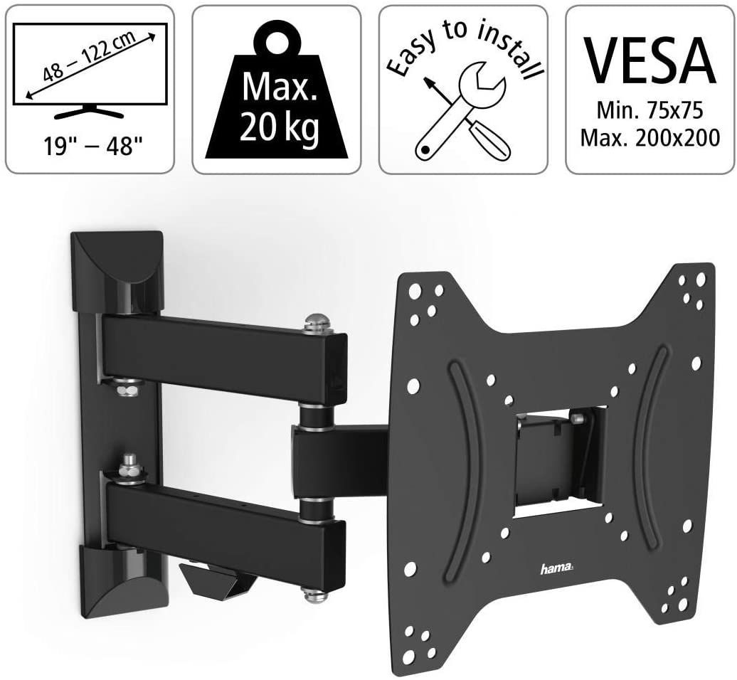 Hama Hama TV Wandhalterung Schwenkbar, Neigbar (19 - 48 Zoll TV Halterung für Fernseher