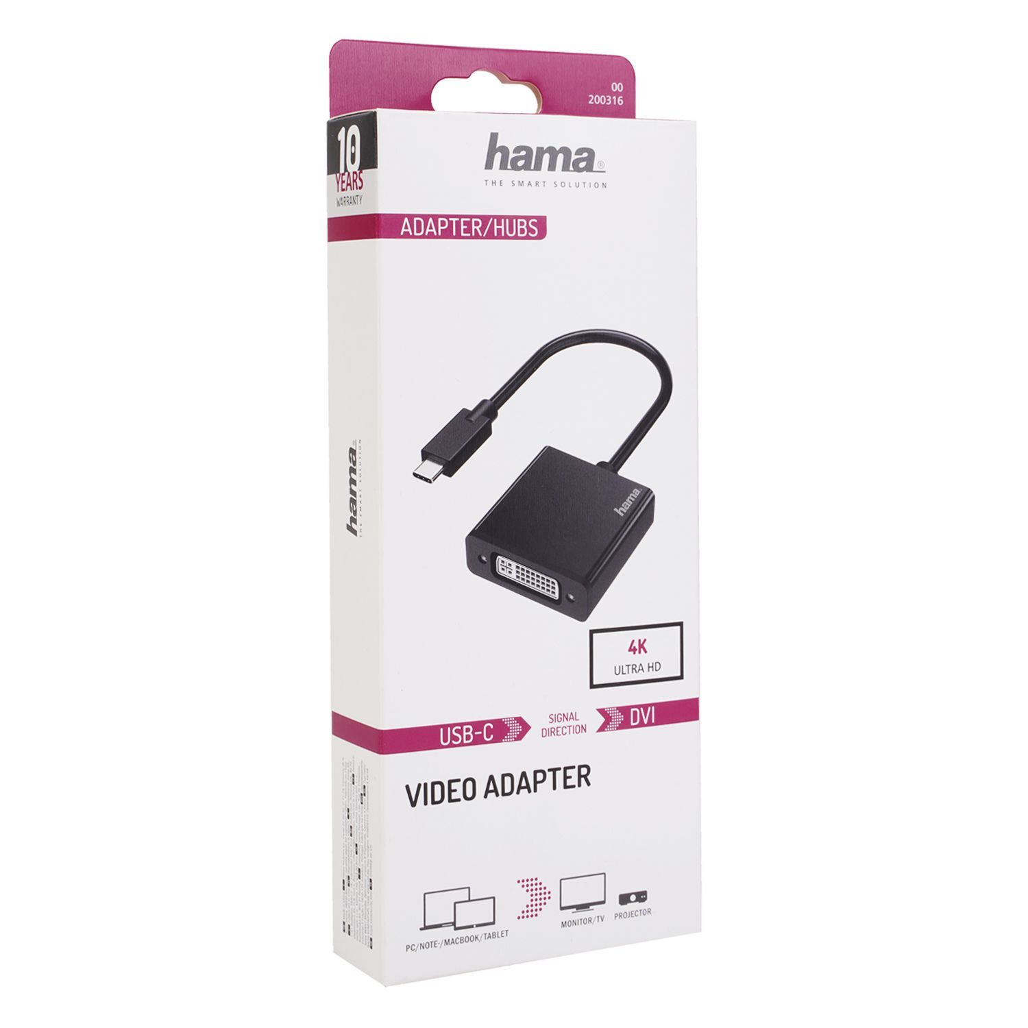 Hama Hama USB-C Stecker auf DVI Adapter Wandler 4K UHD PC Notebook Monitor Beamer TV
