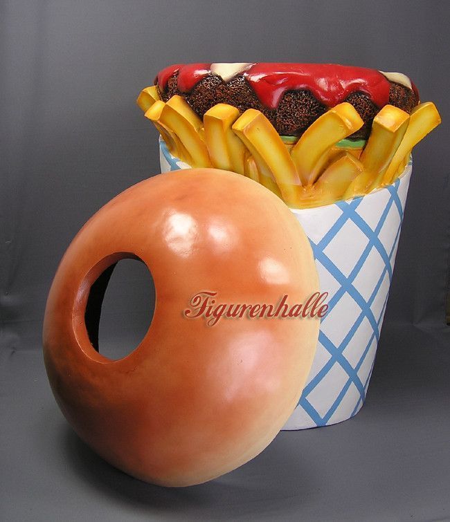 Hamburger Mülleimer Deko Figur Imbiss Pommesbude Schausteller Deko Kimes USA Pommes