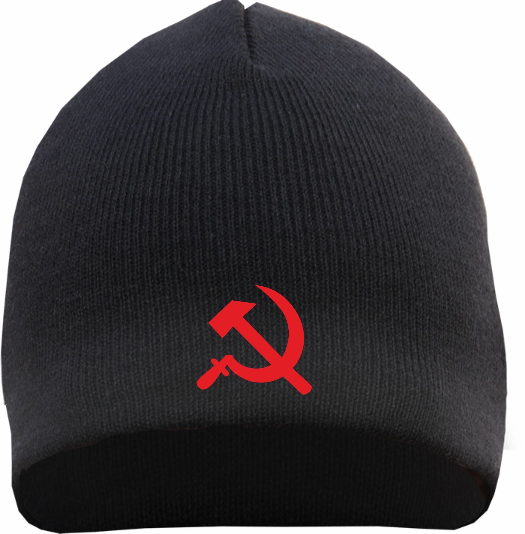 Hammer und Sichel Beanie Mütze - Bestickt - Strickmütze Wintermütze